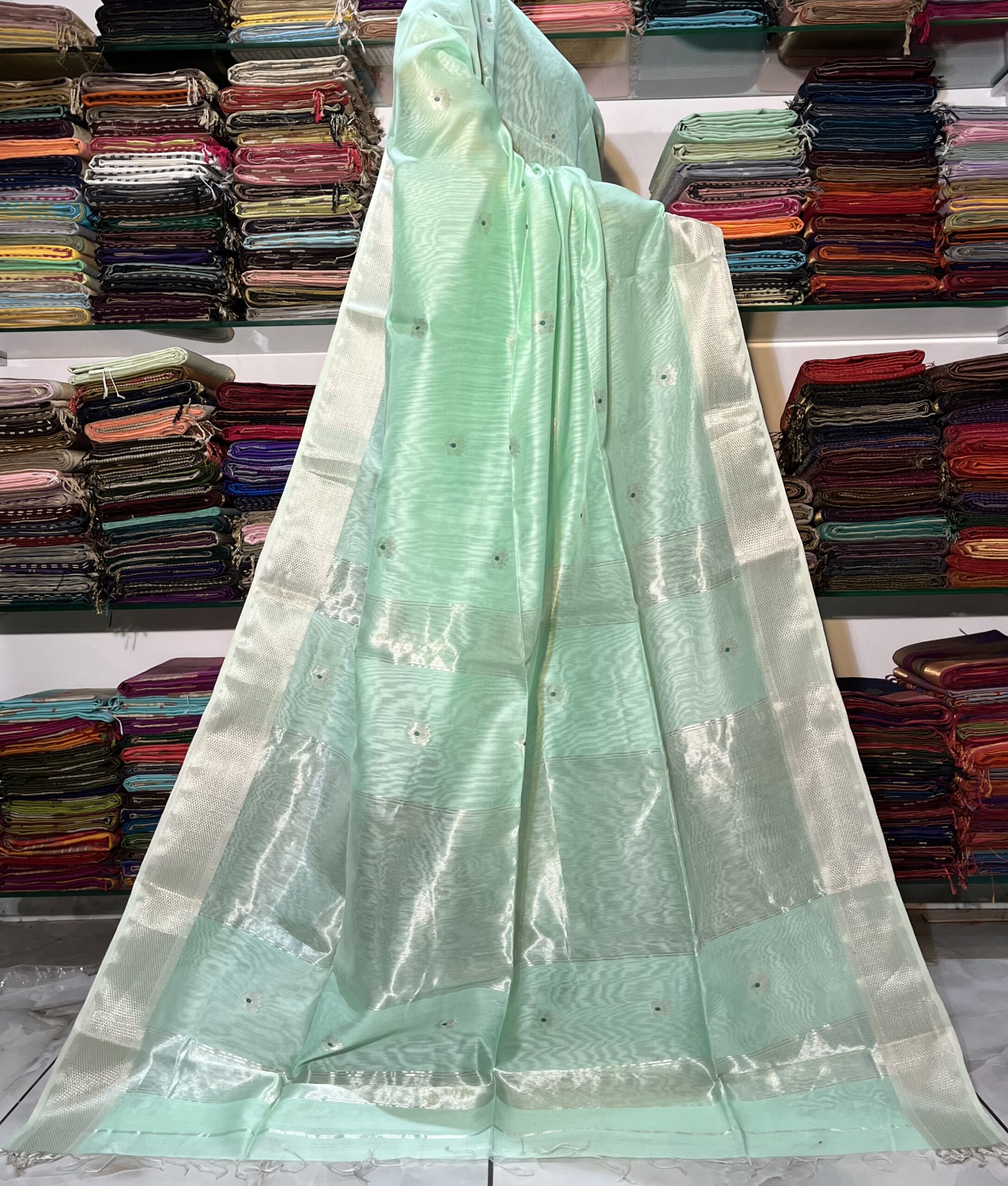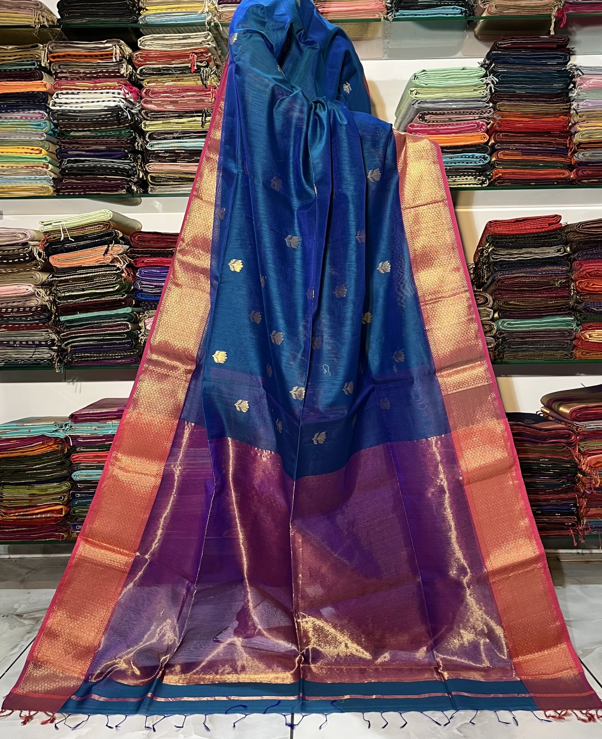 Be the first to review “Maheshwari All Over Zari Lotus Buti Saree”