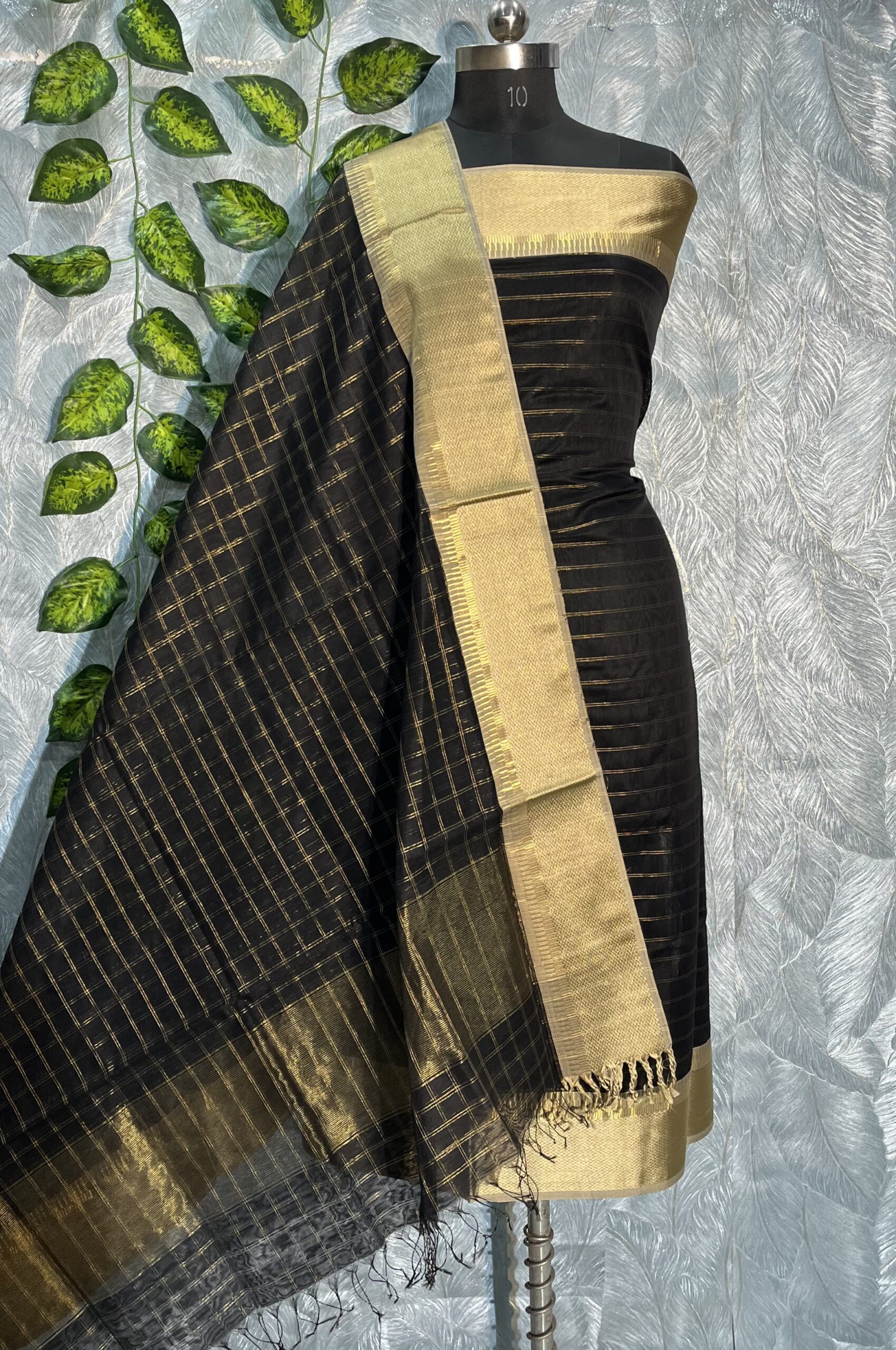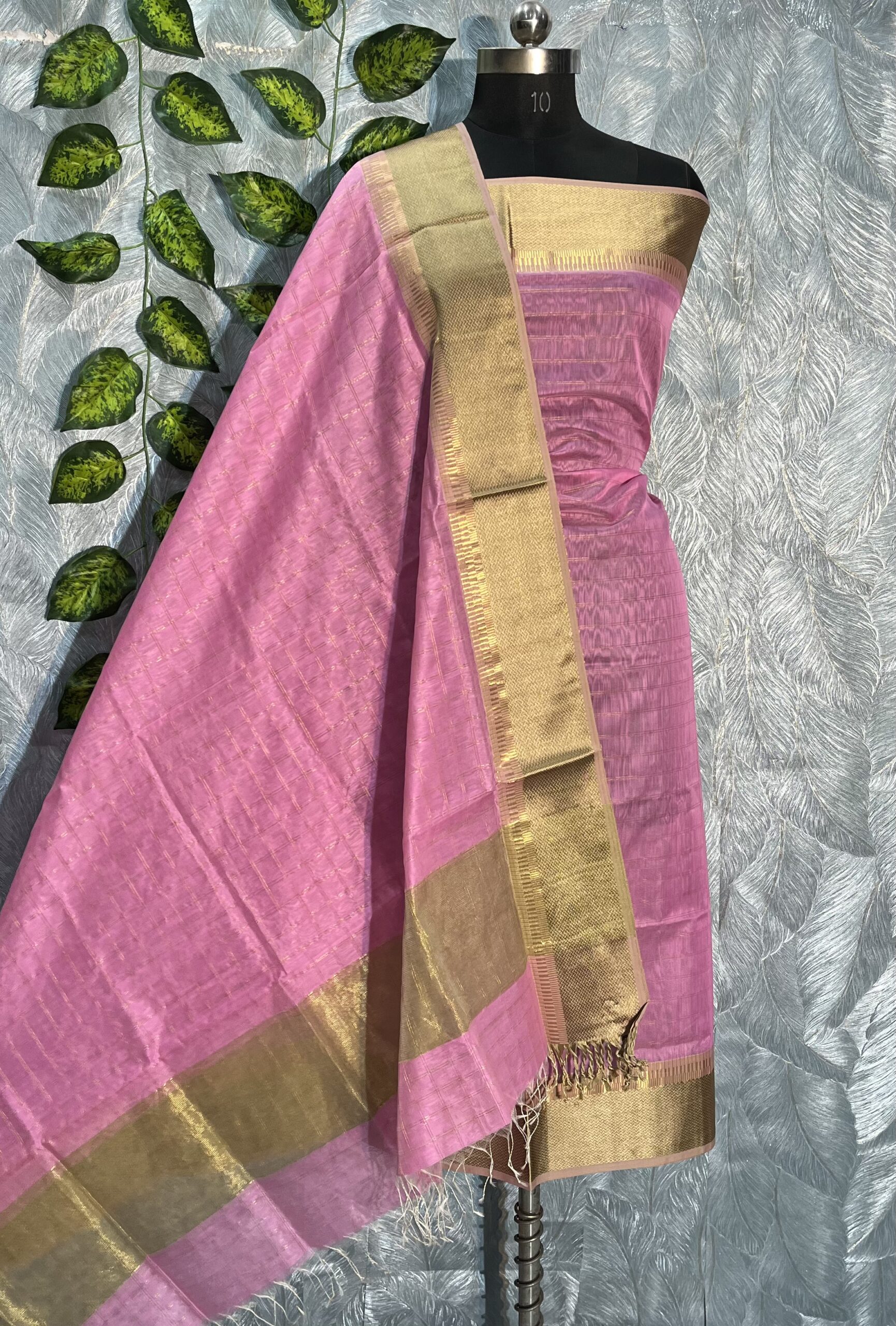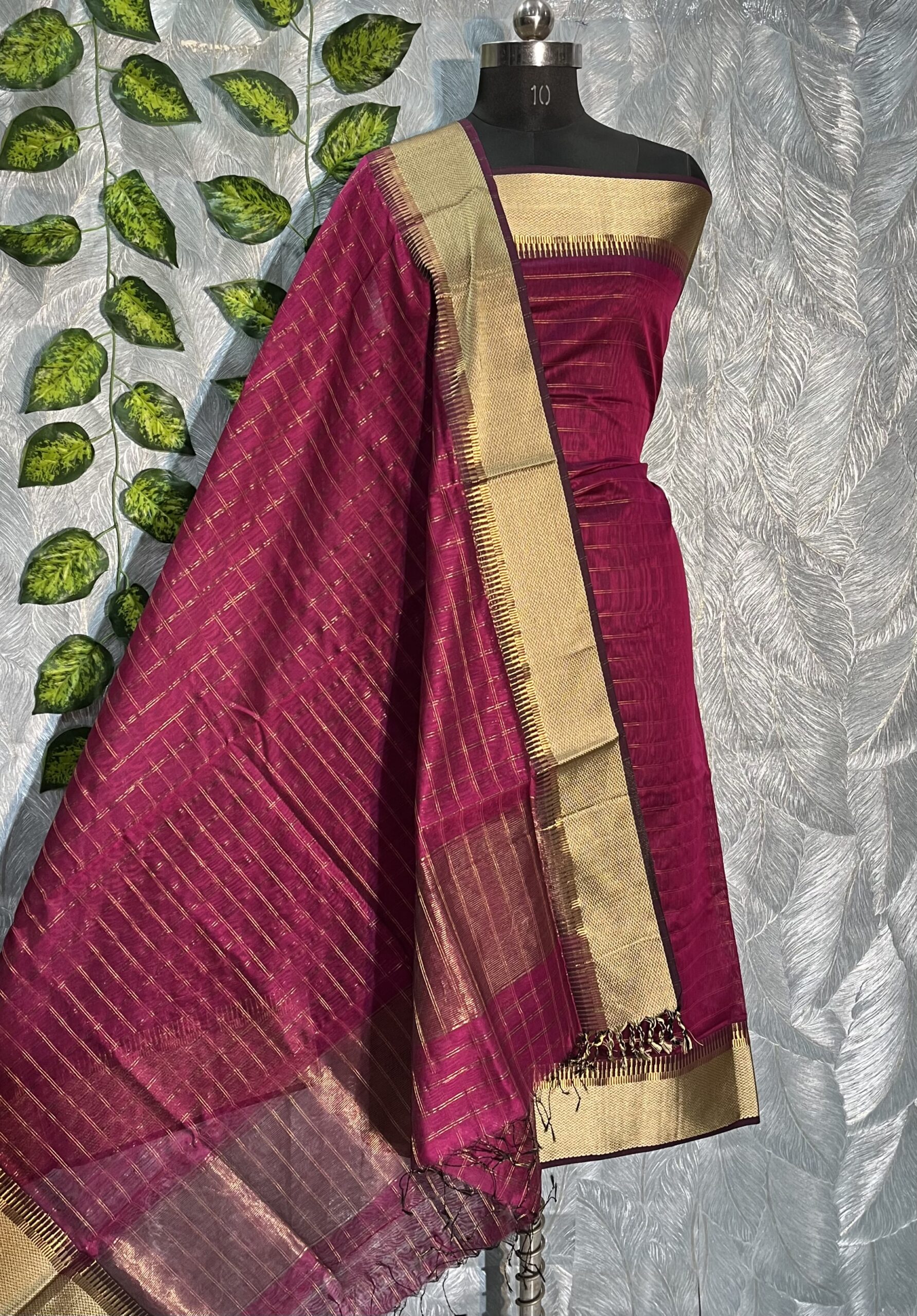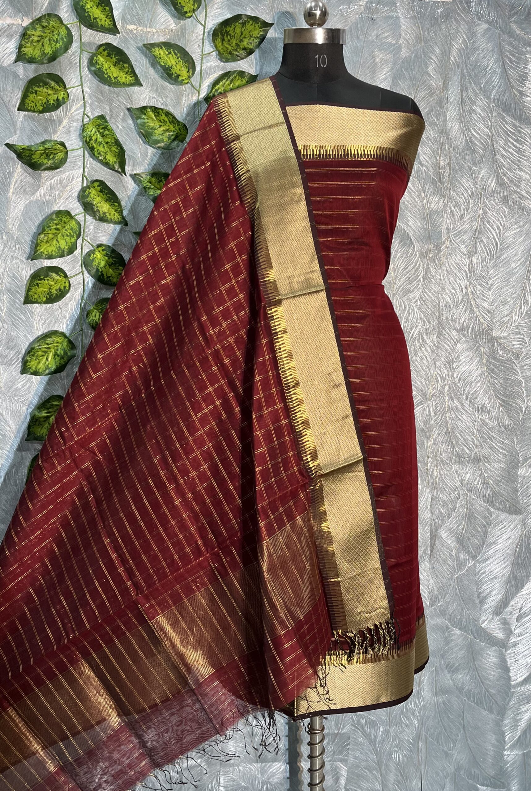 Maheshwari Kali Border Chex Top & Dupatta Dress Material