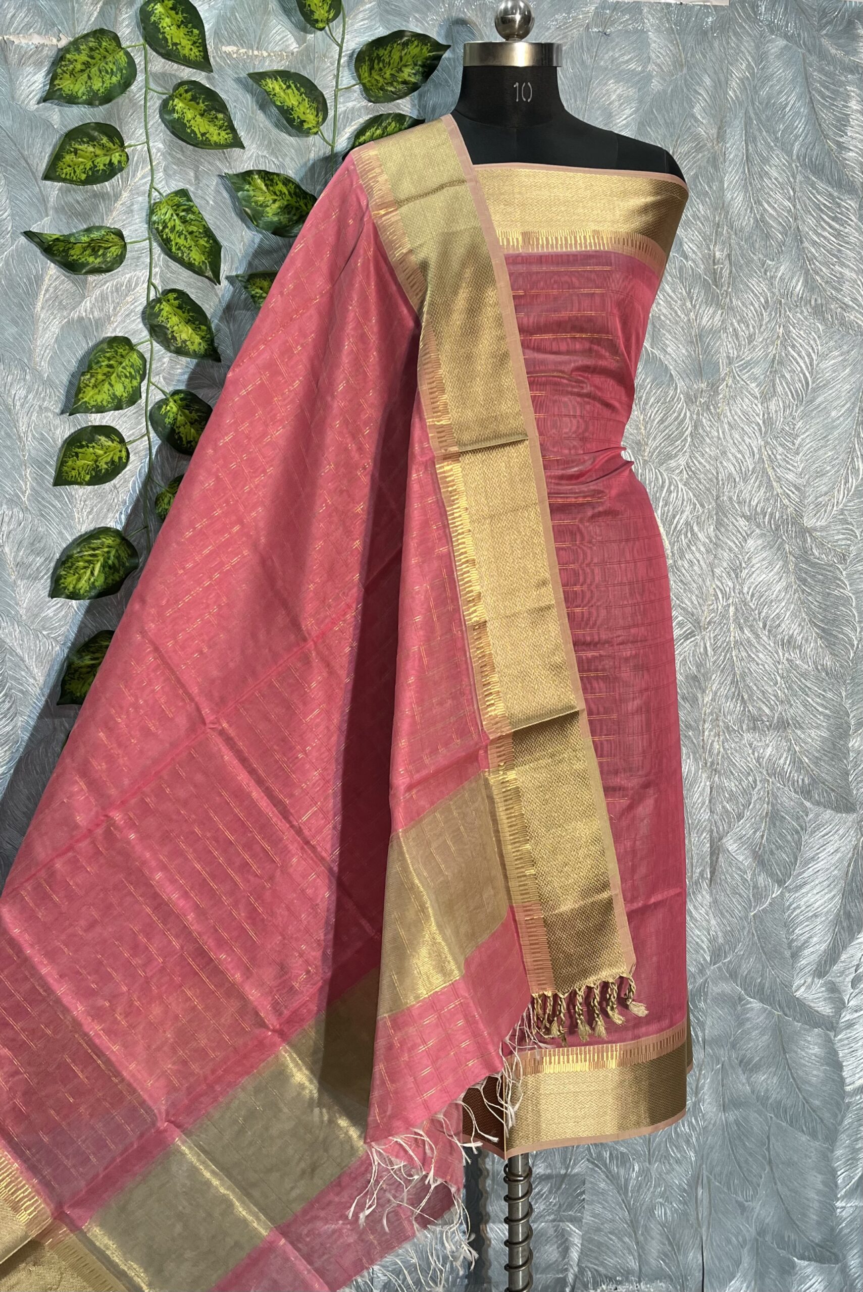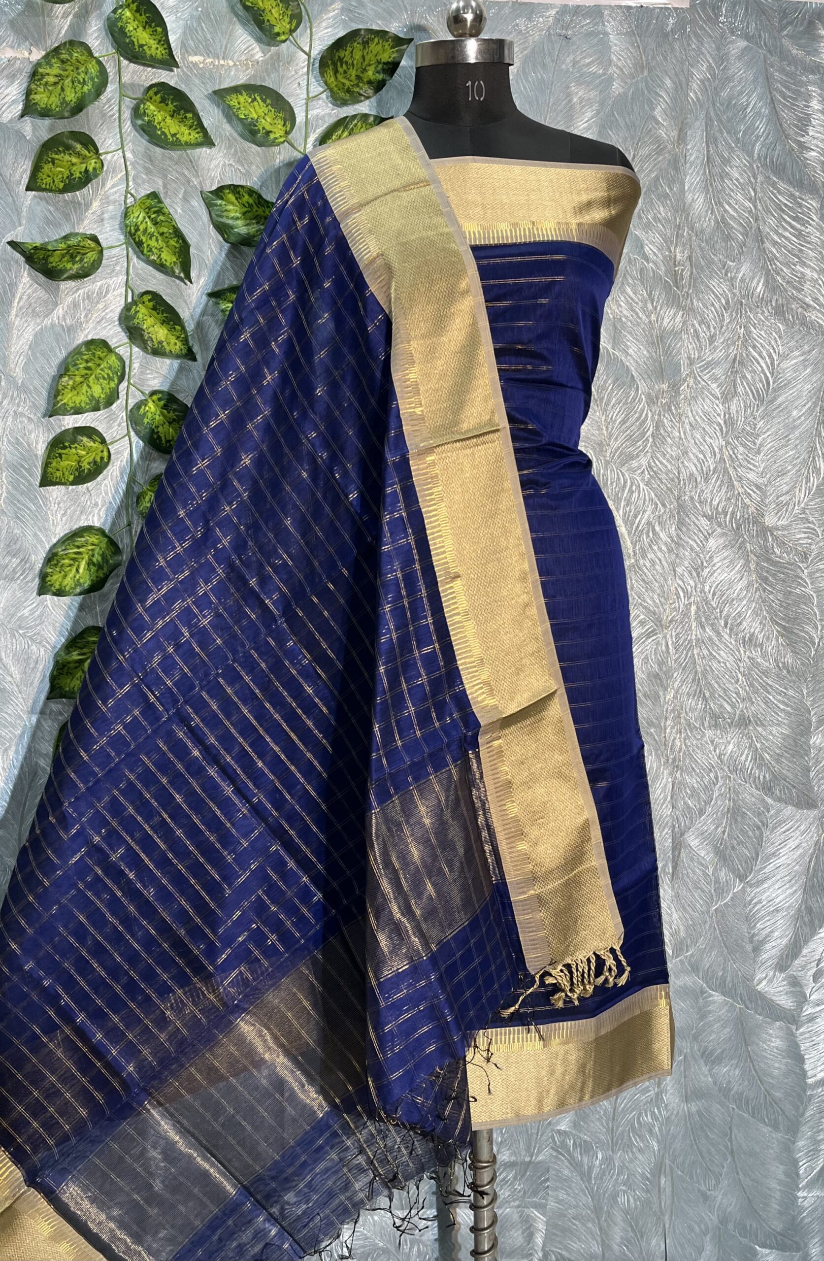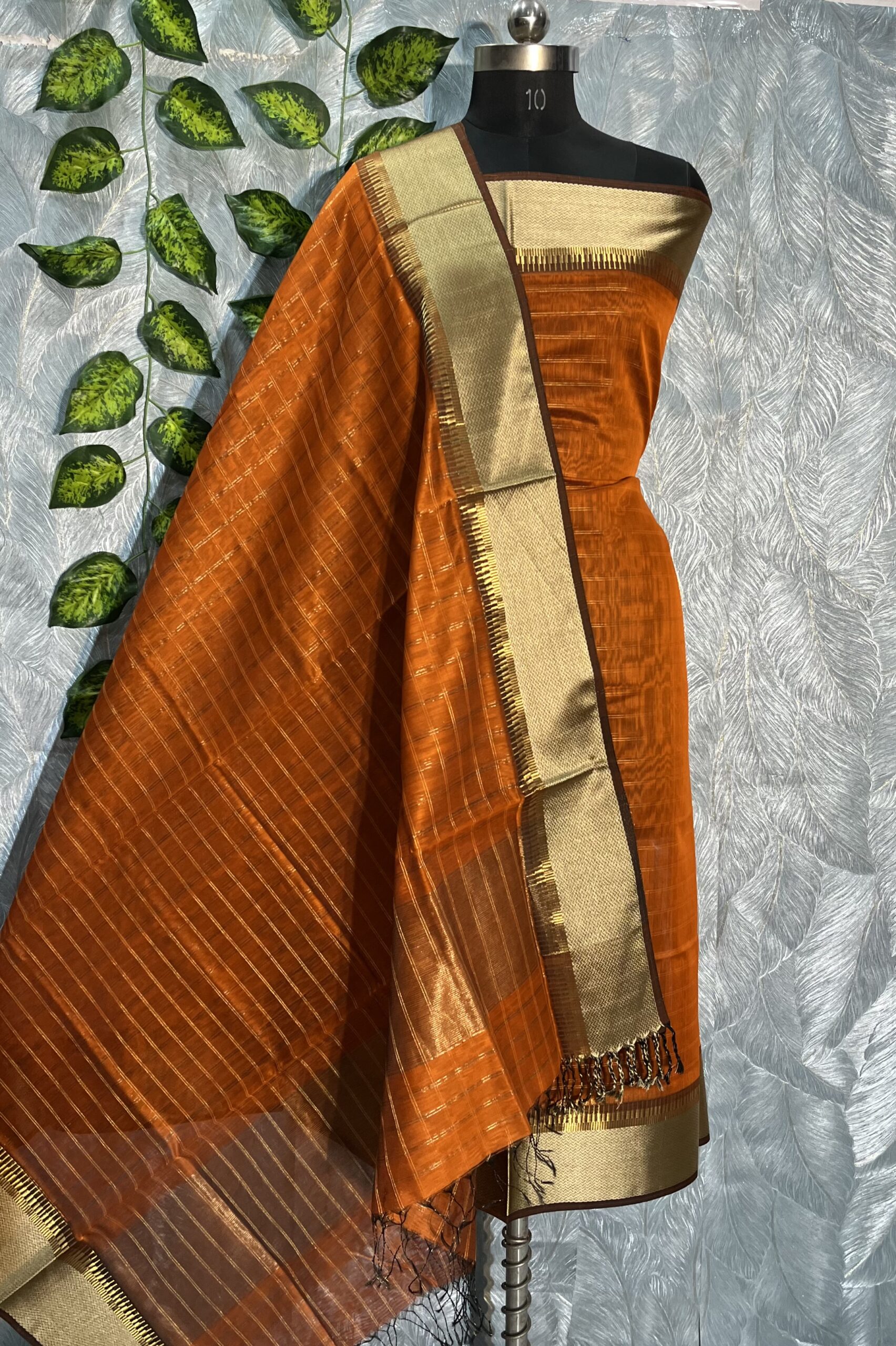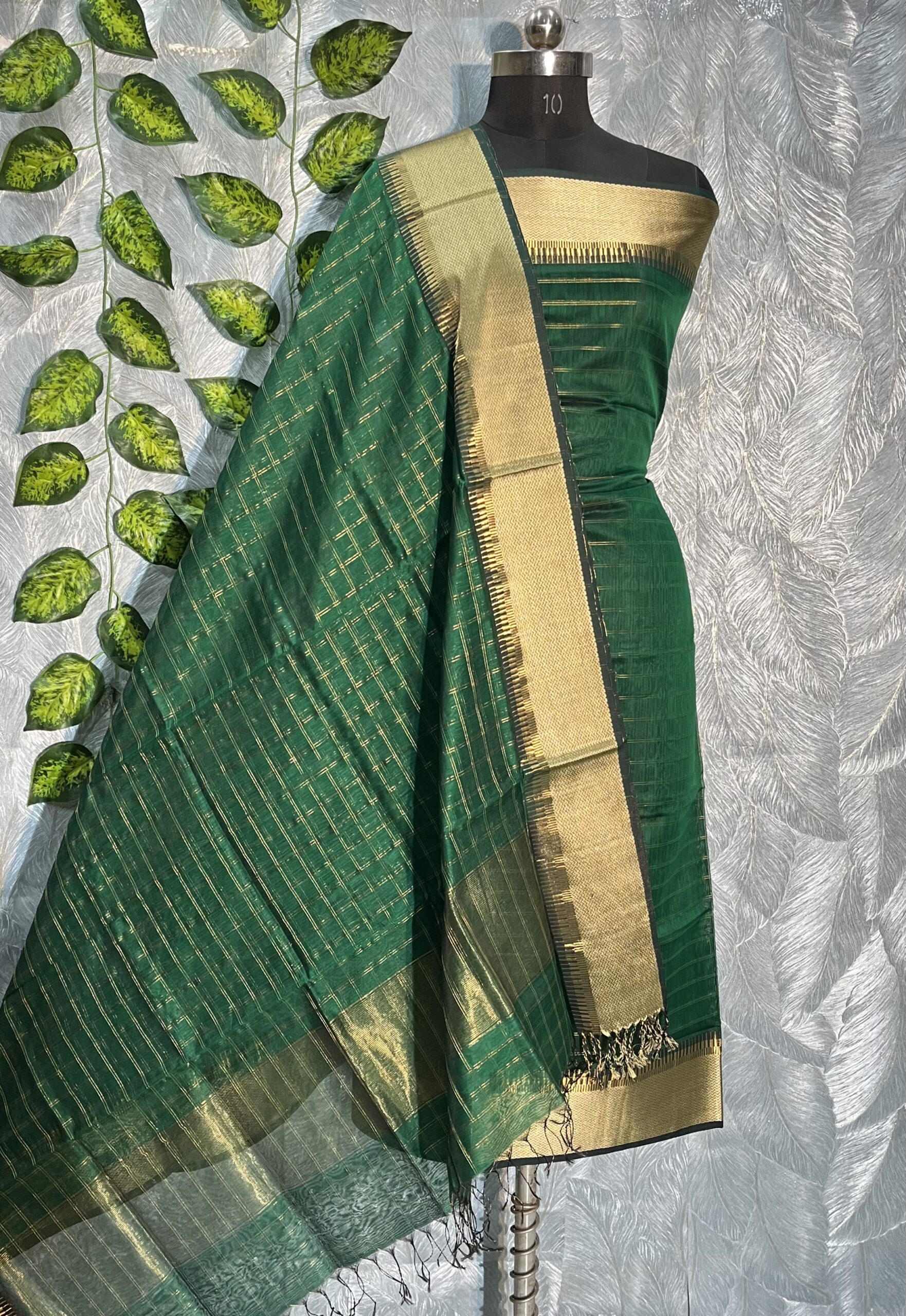 Maheshwari Kali Border Chex Top & Dupatta Dress Material