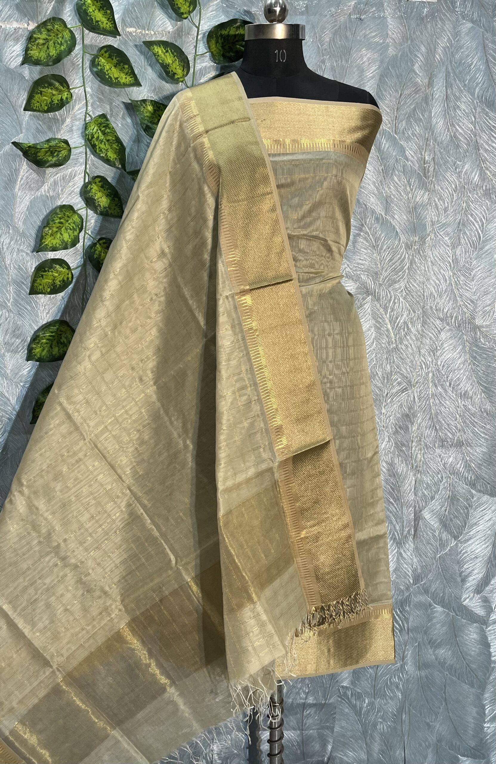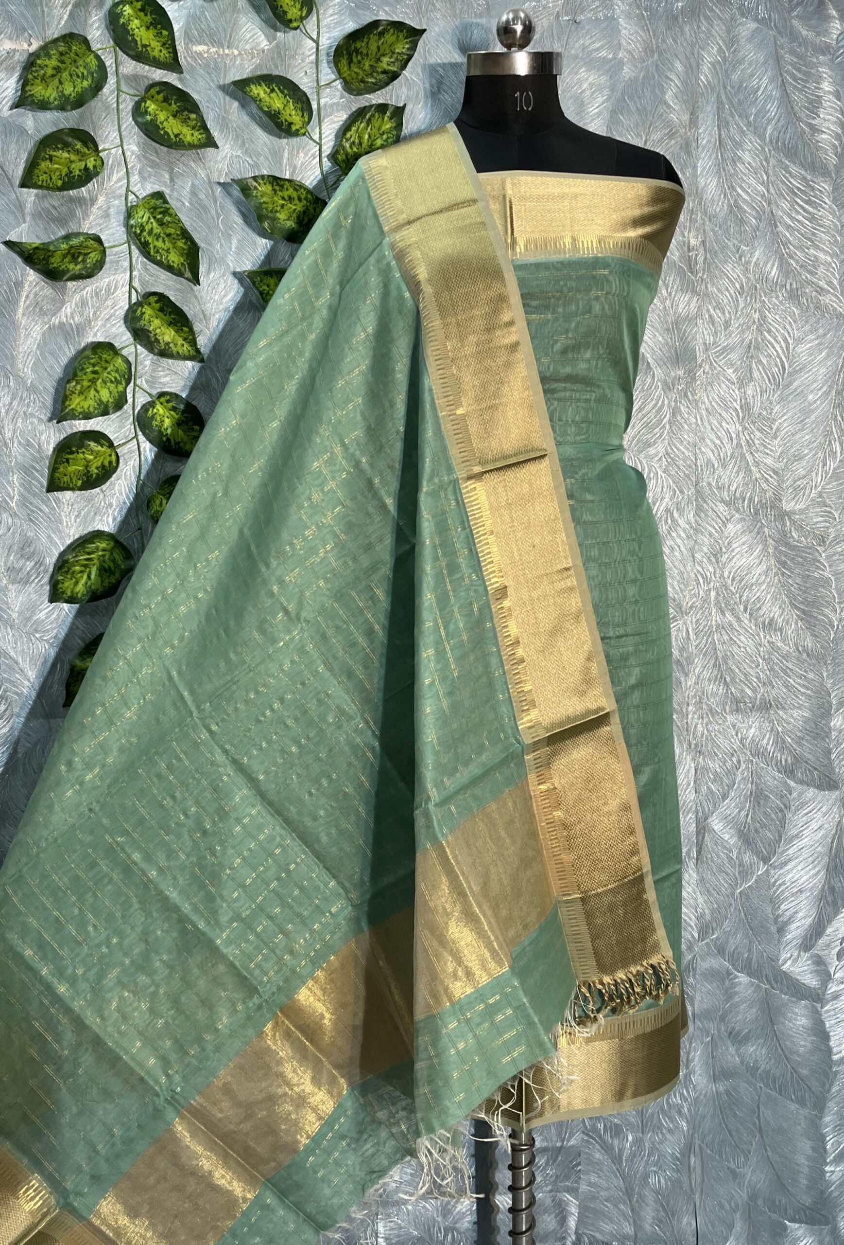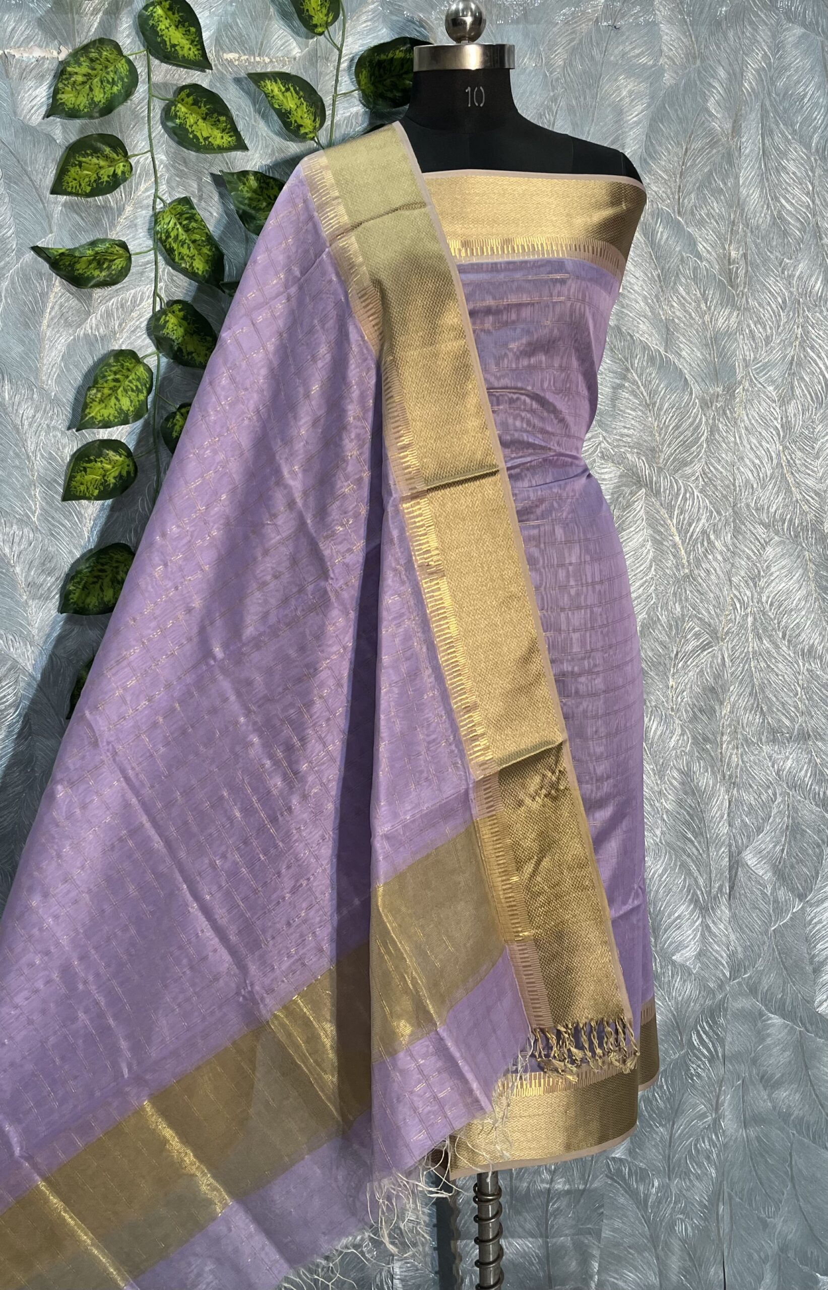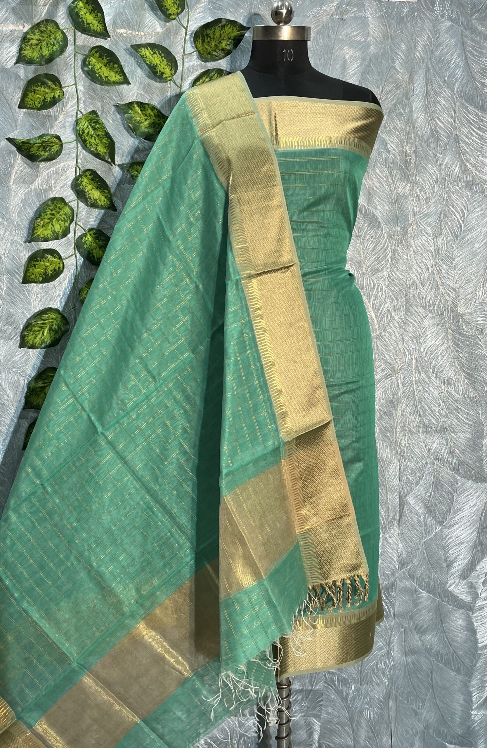 Maheshwari Kali Border Chex Top & Dupatta Dress Material