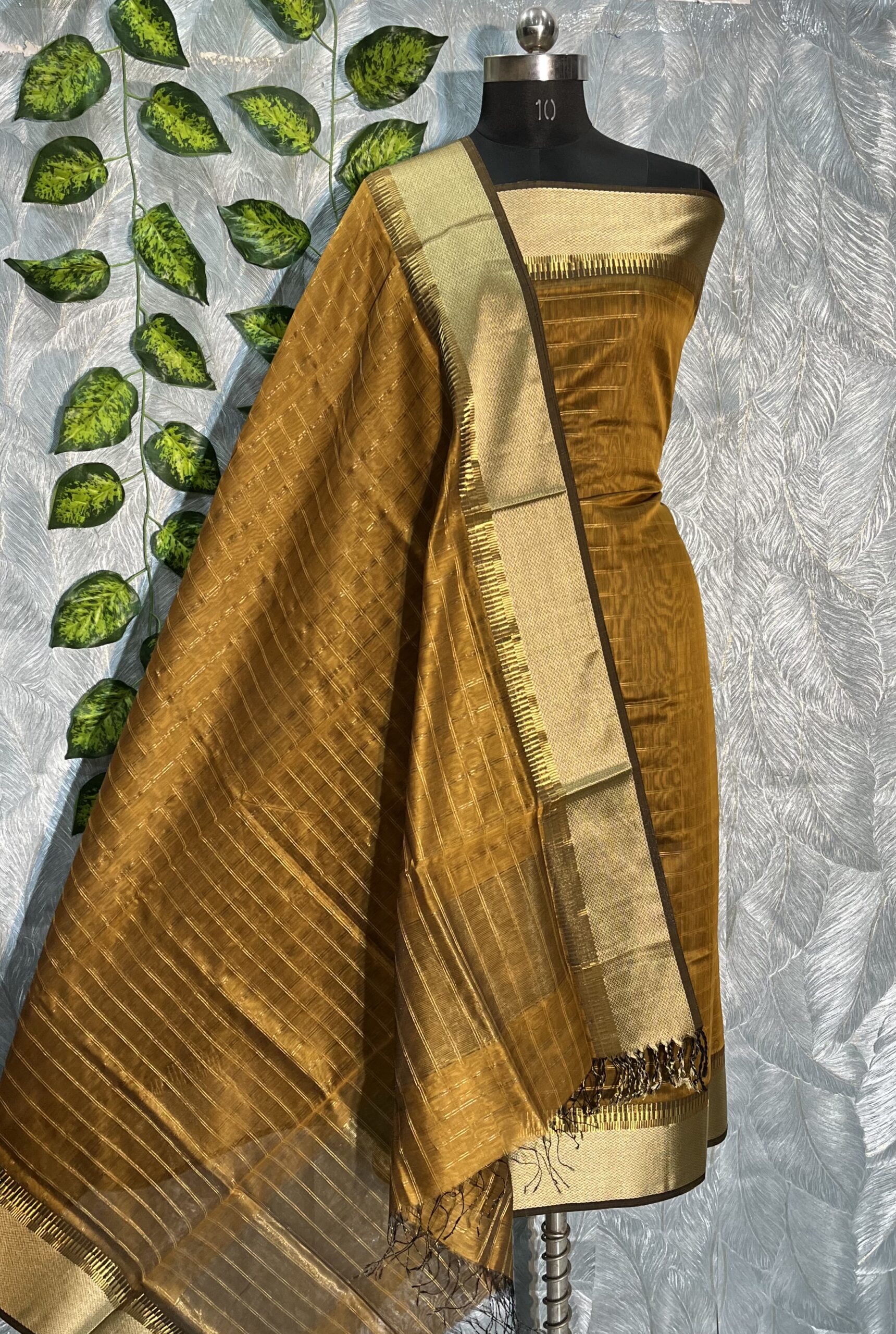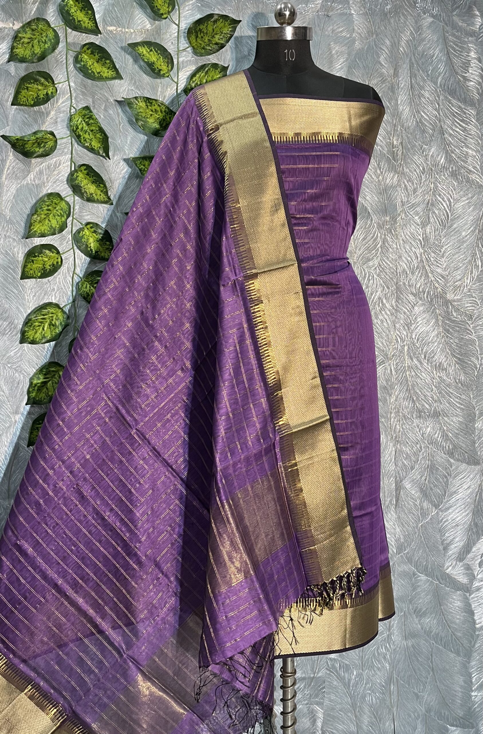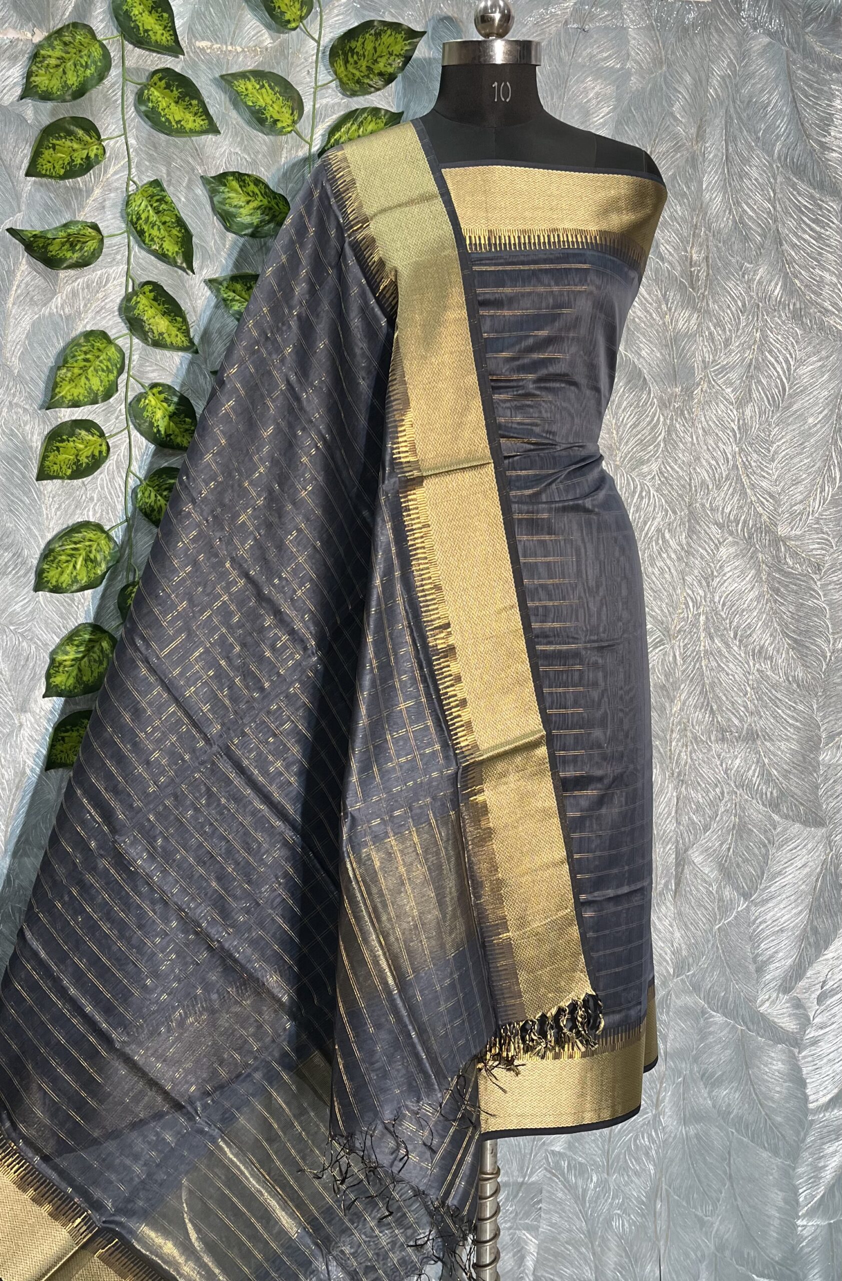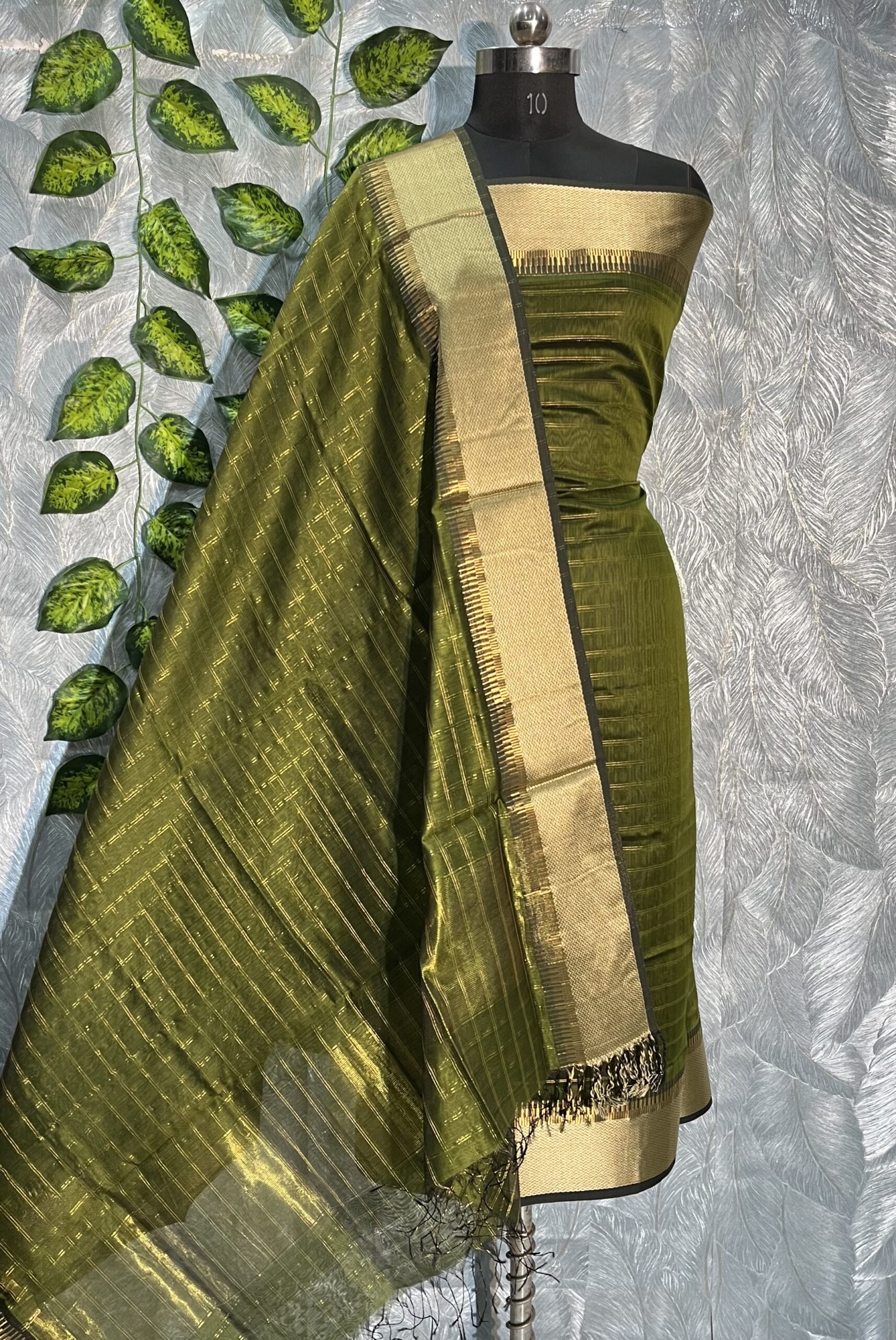 Maheshwari Kali Border Chex Top & Dupatta Dress Material