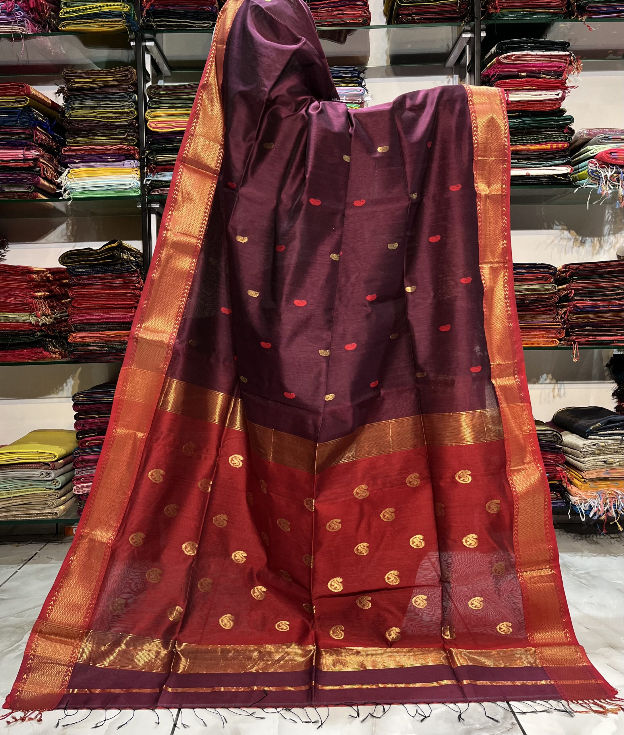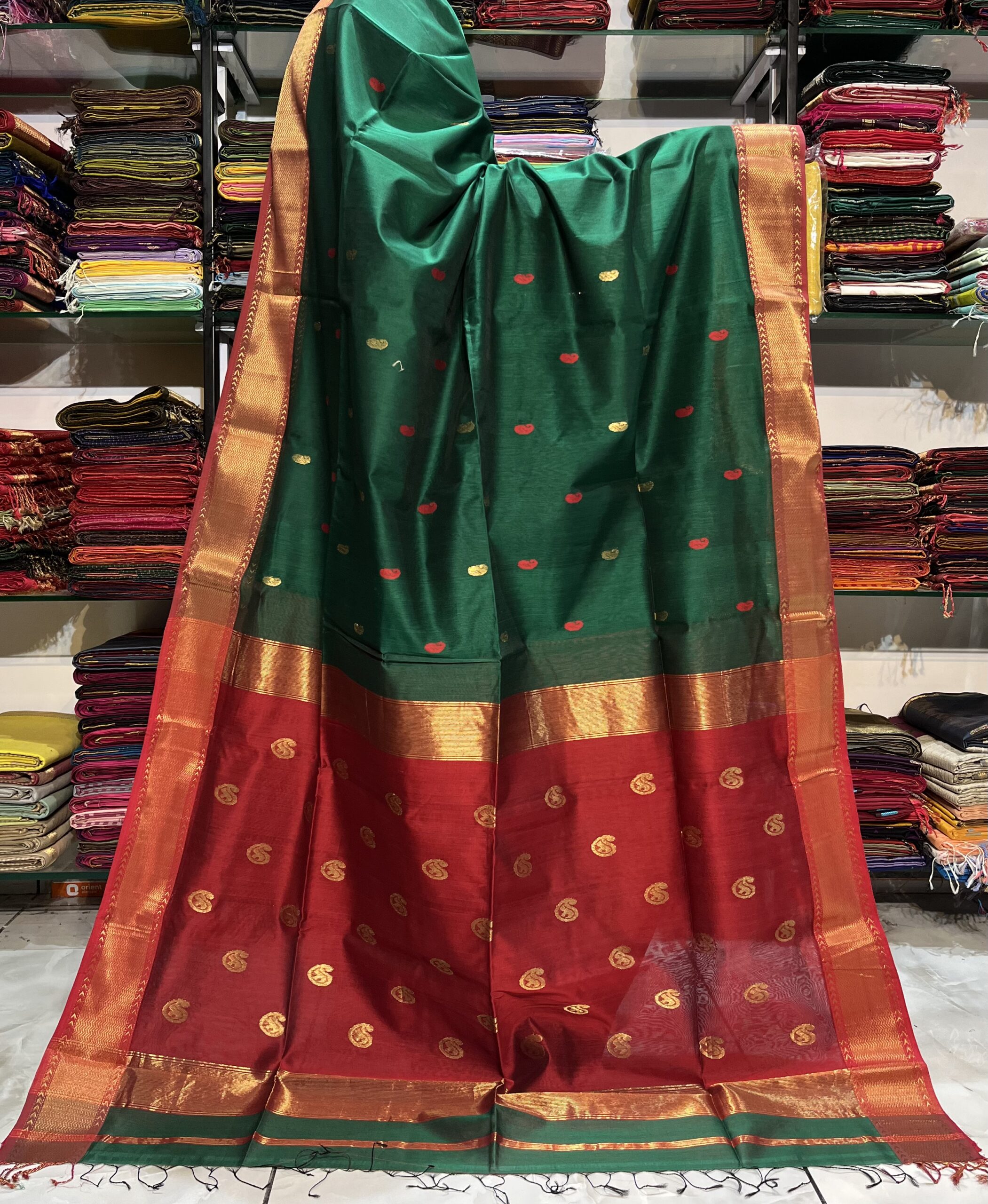 Be the first to review “Maheshwari Keri Zari Buti Saree”