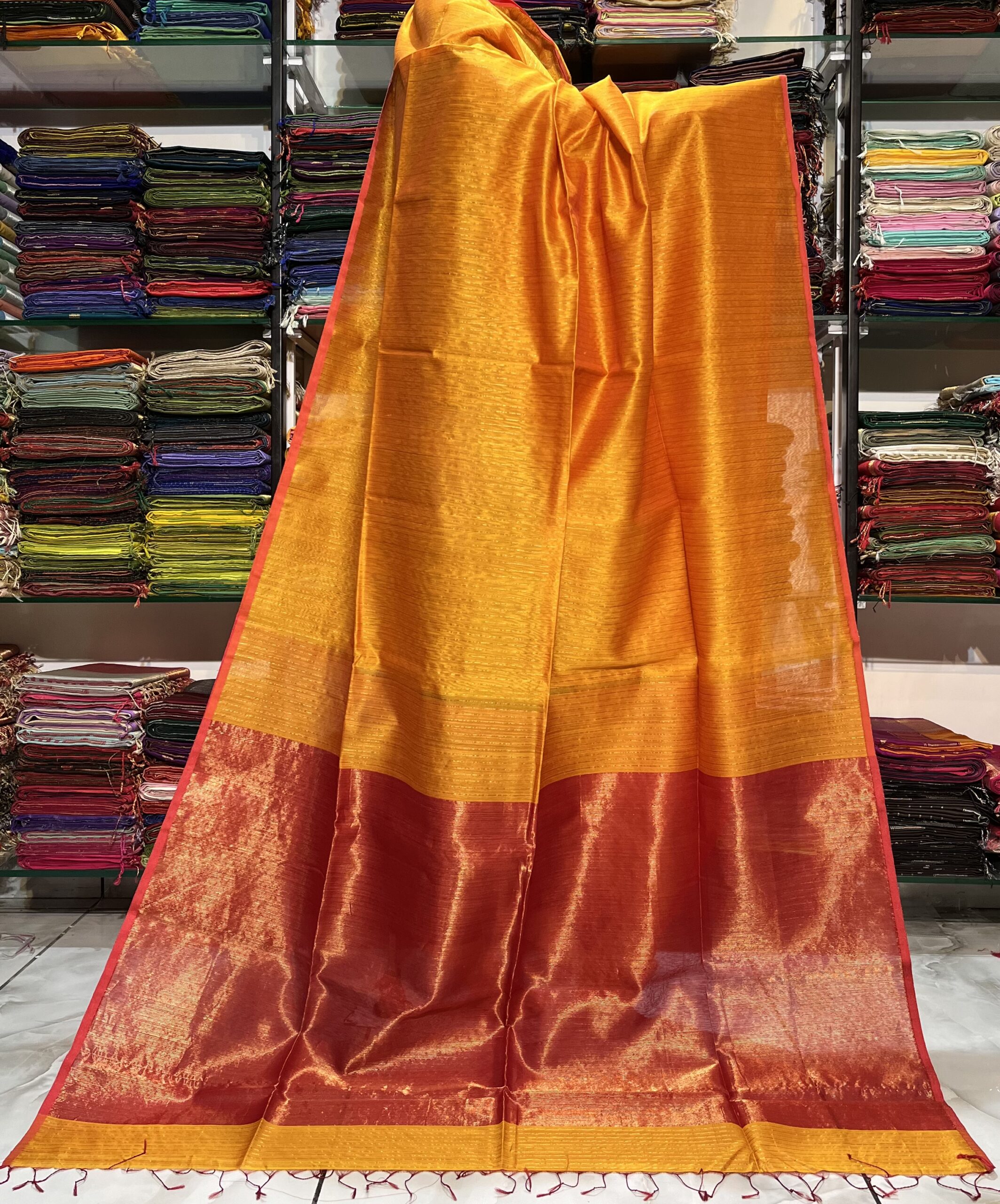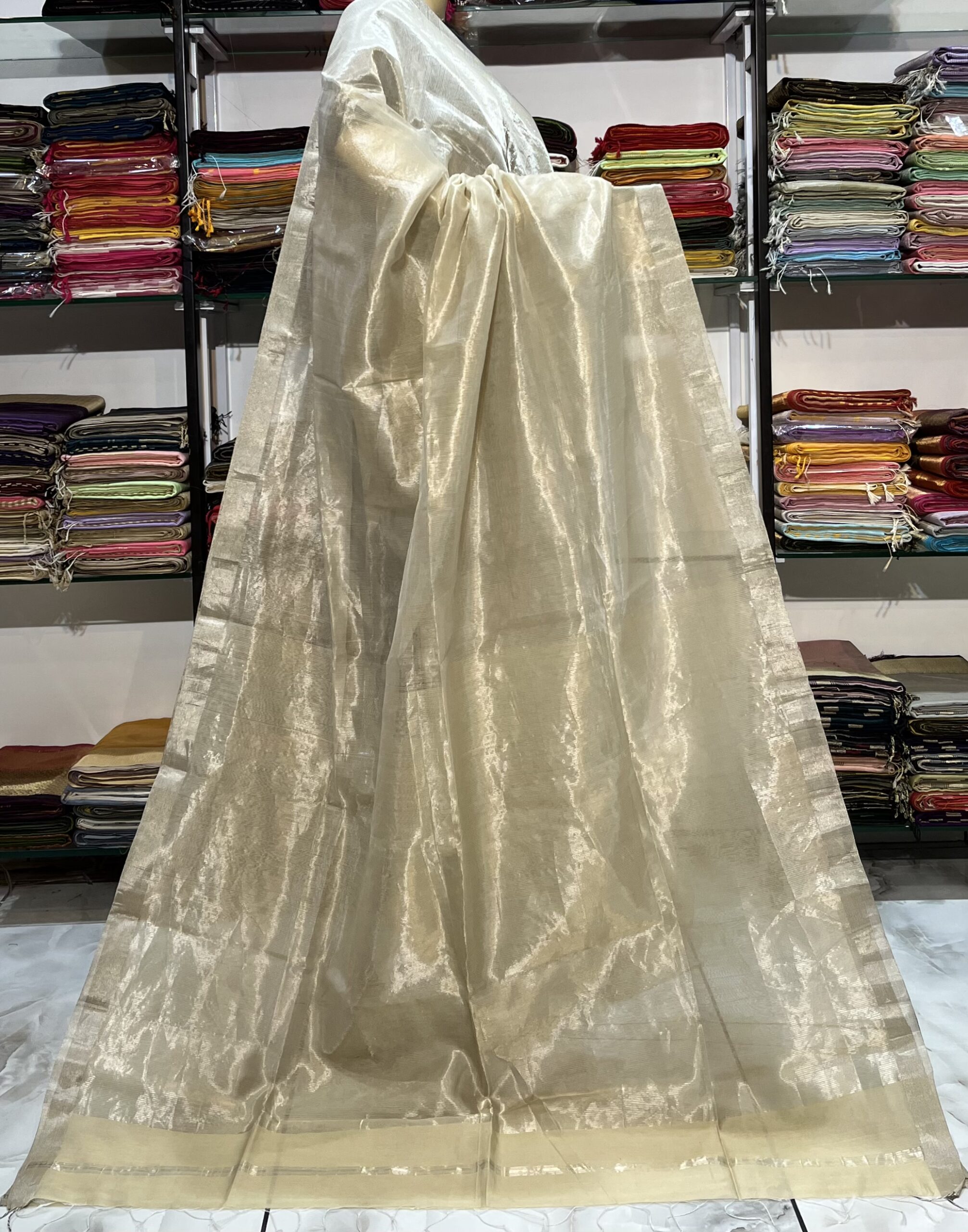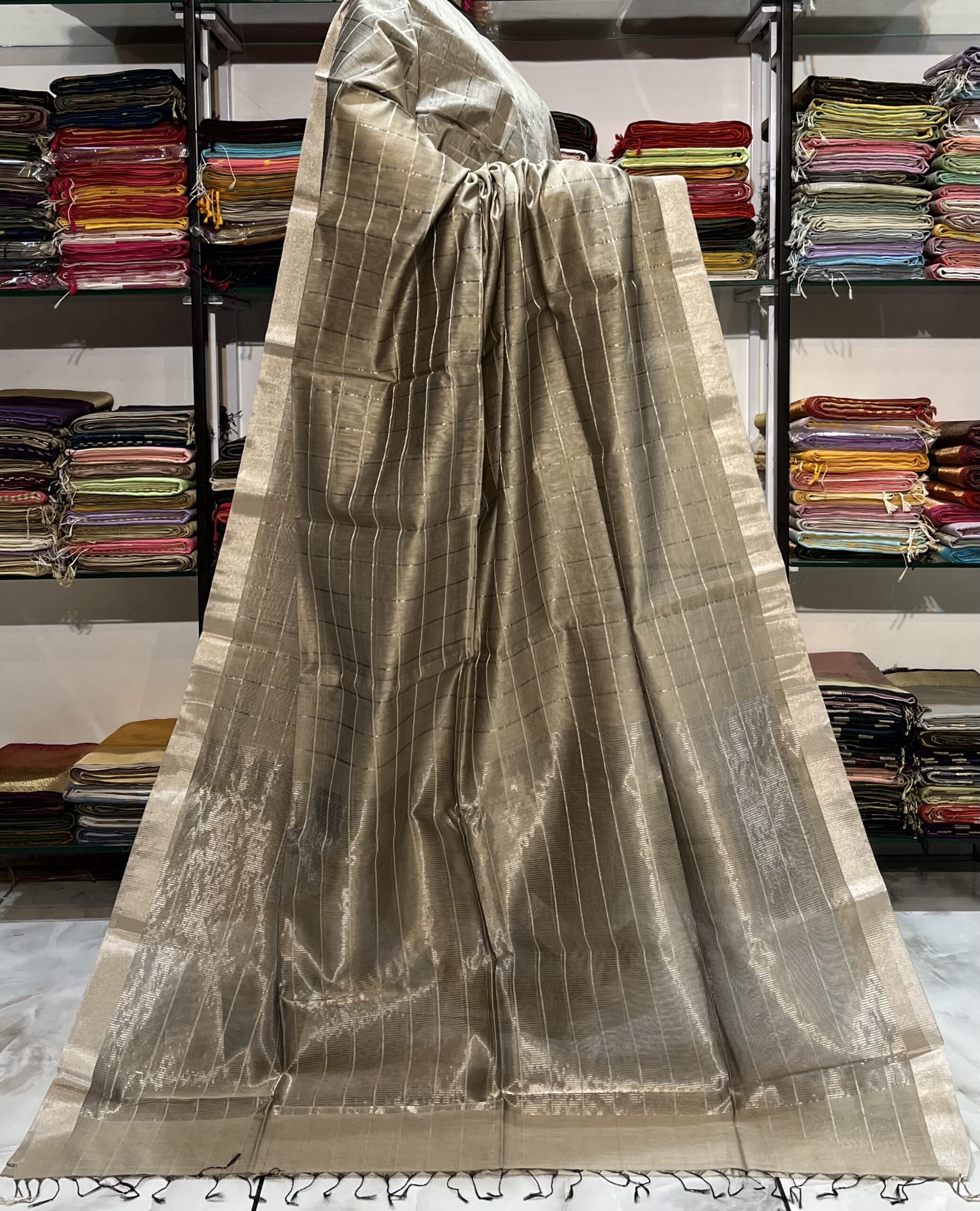 Maheshwari Silver Zari Line Saree
