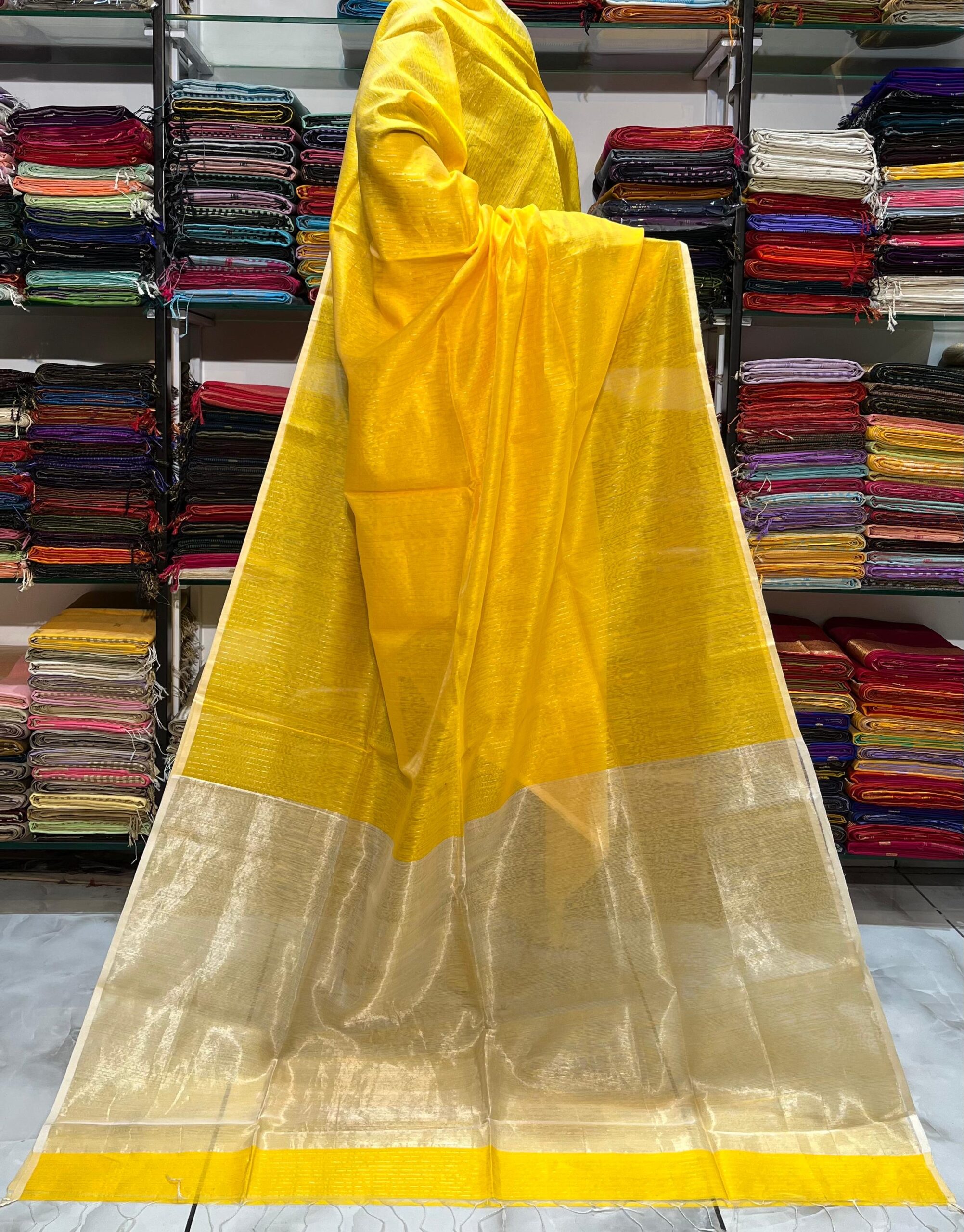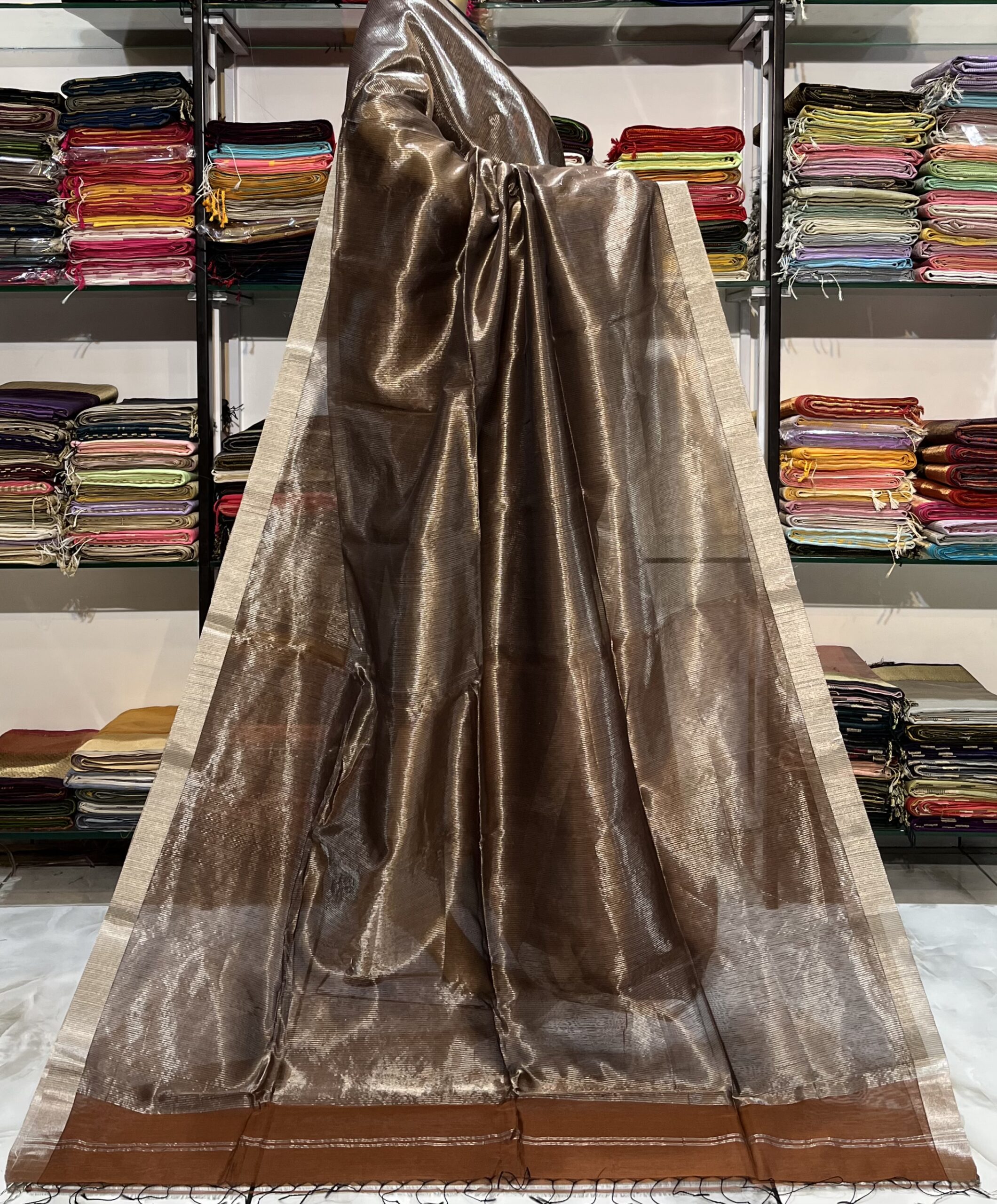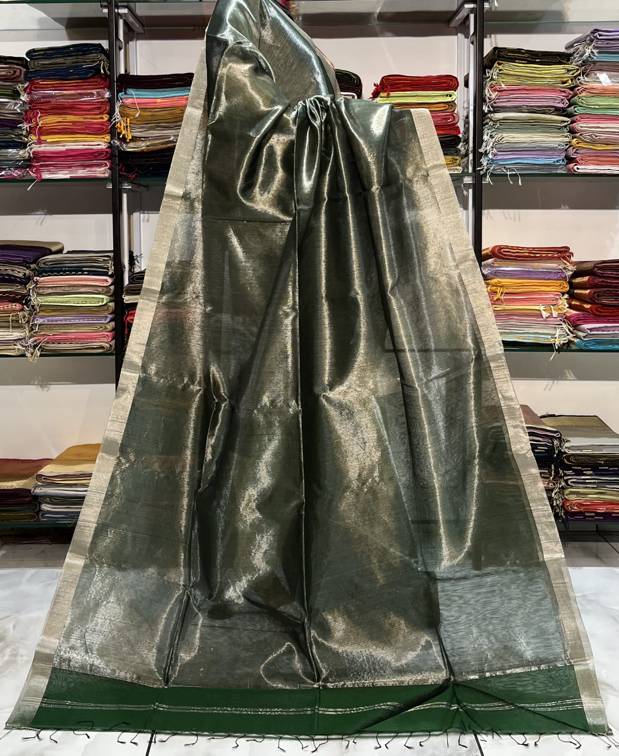 Maheshwari Silver Zari Line Saree