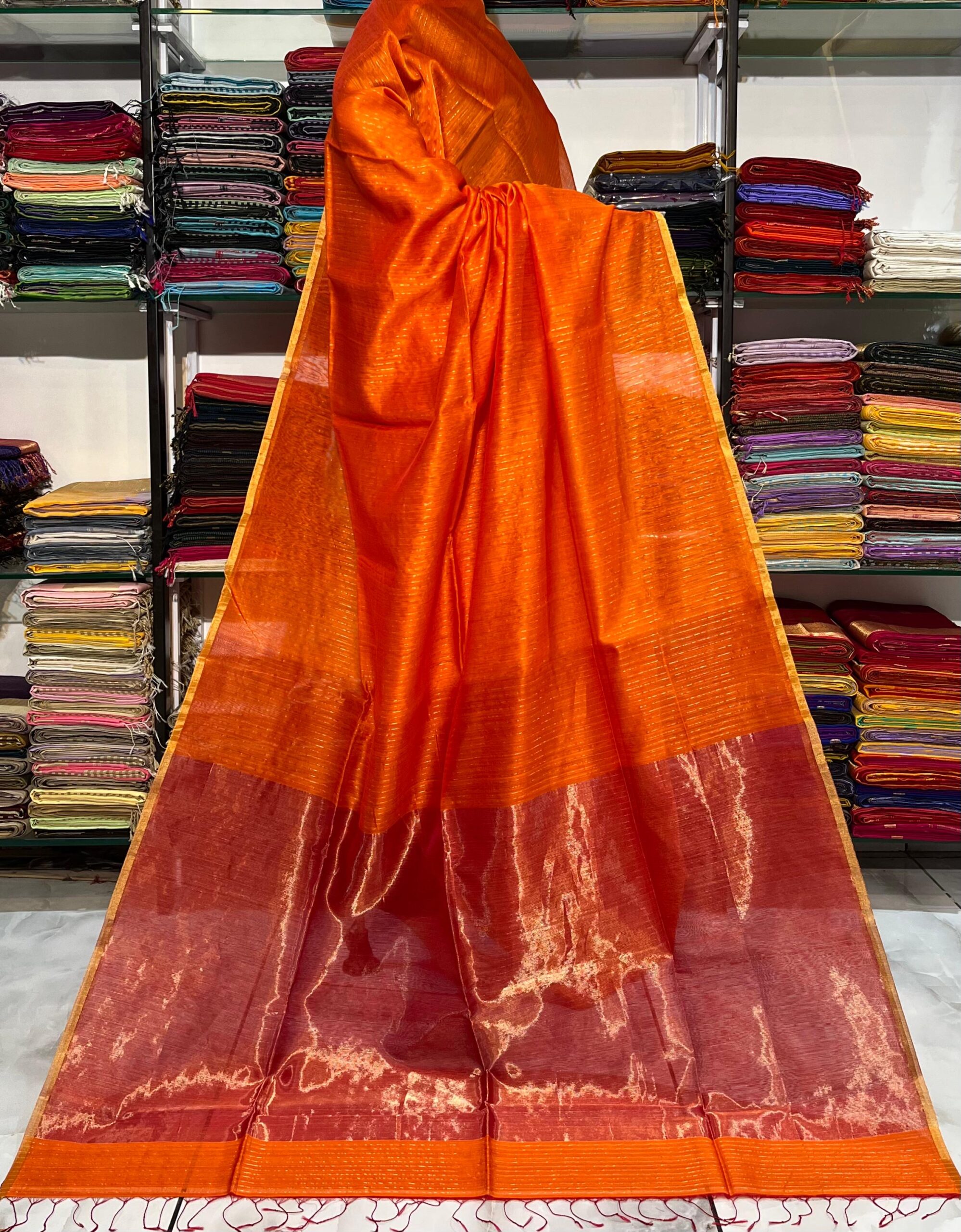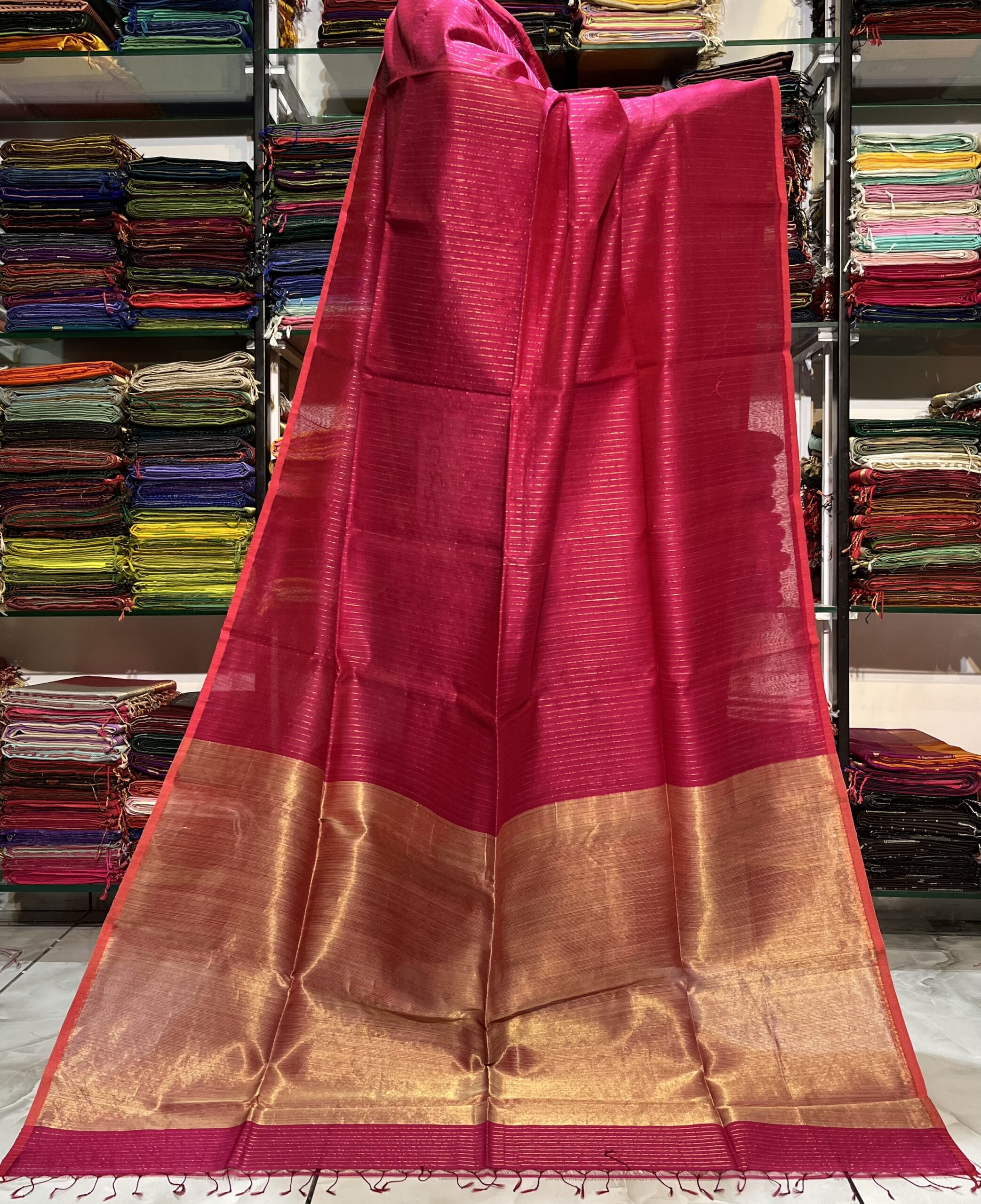 Be the first to review “Maheshwari Silver Zari Line Saree”