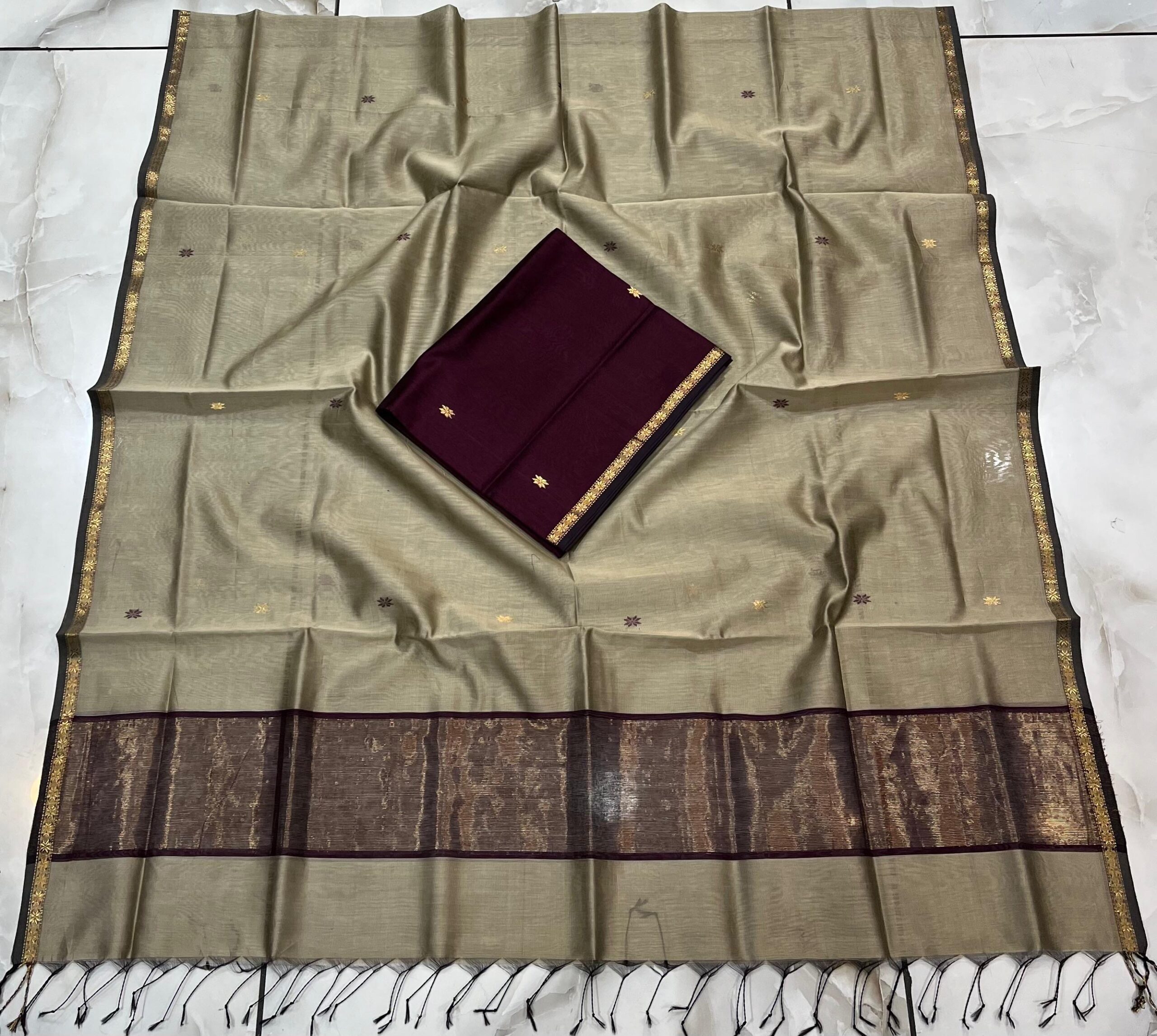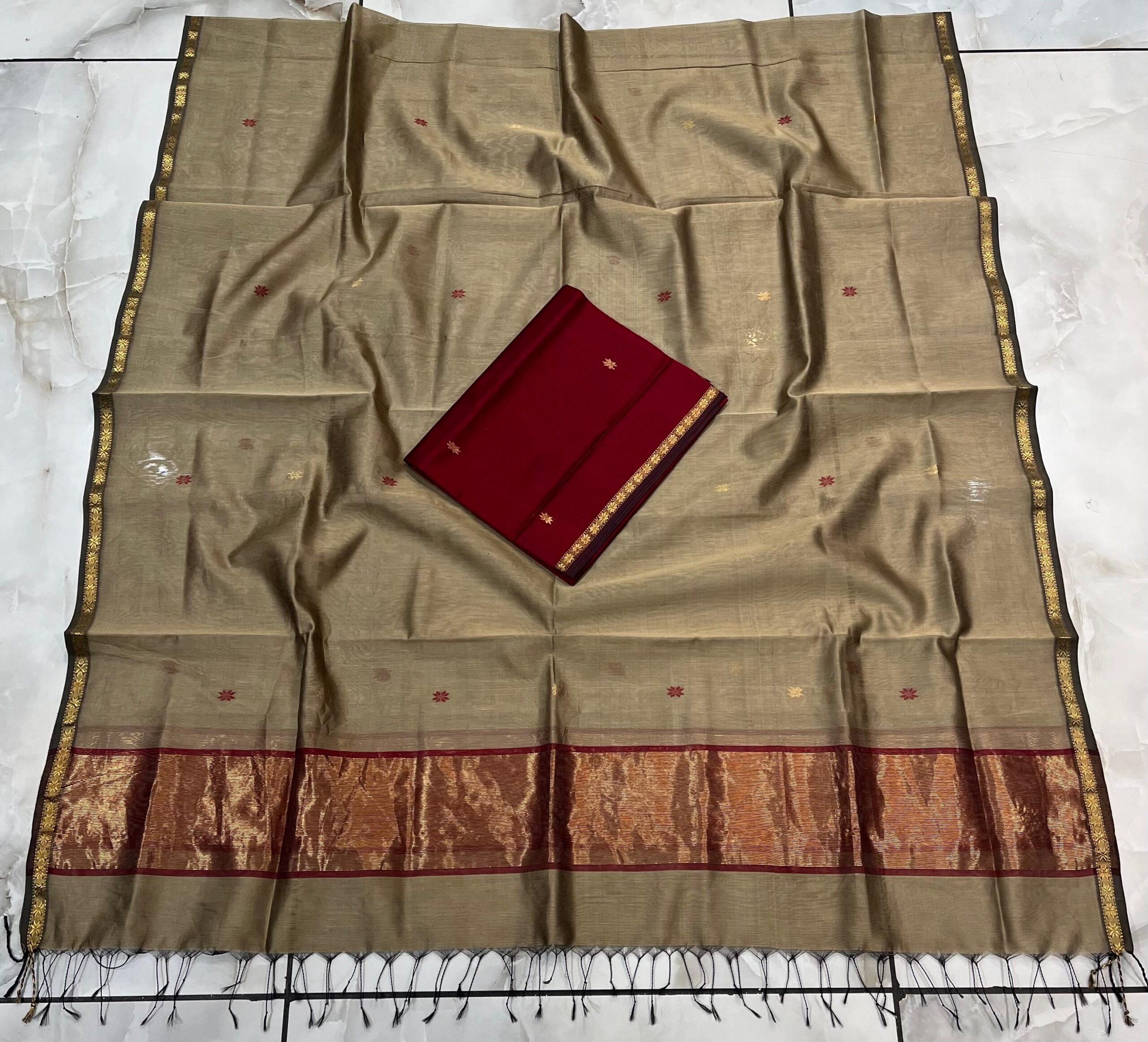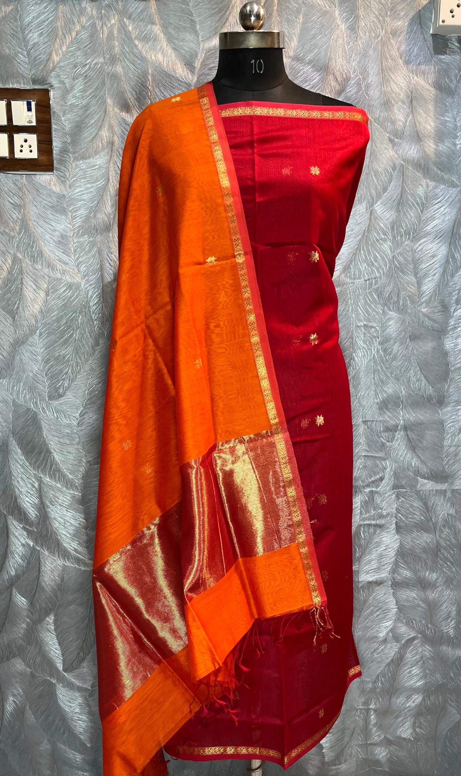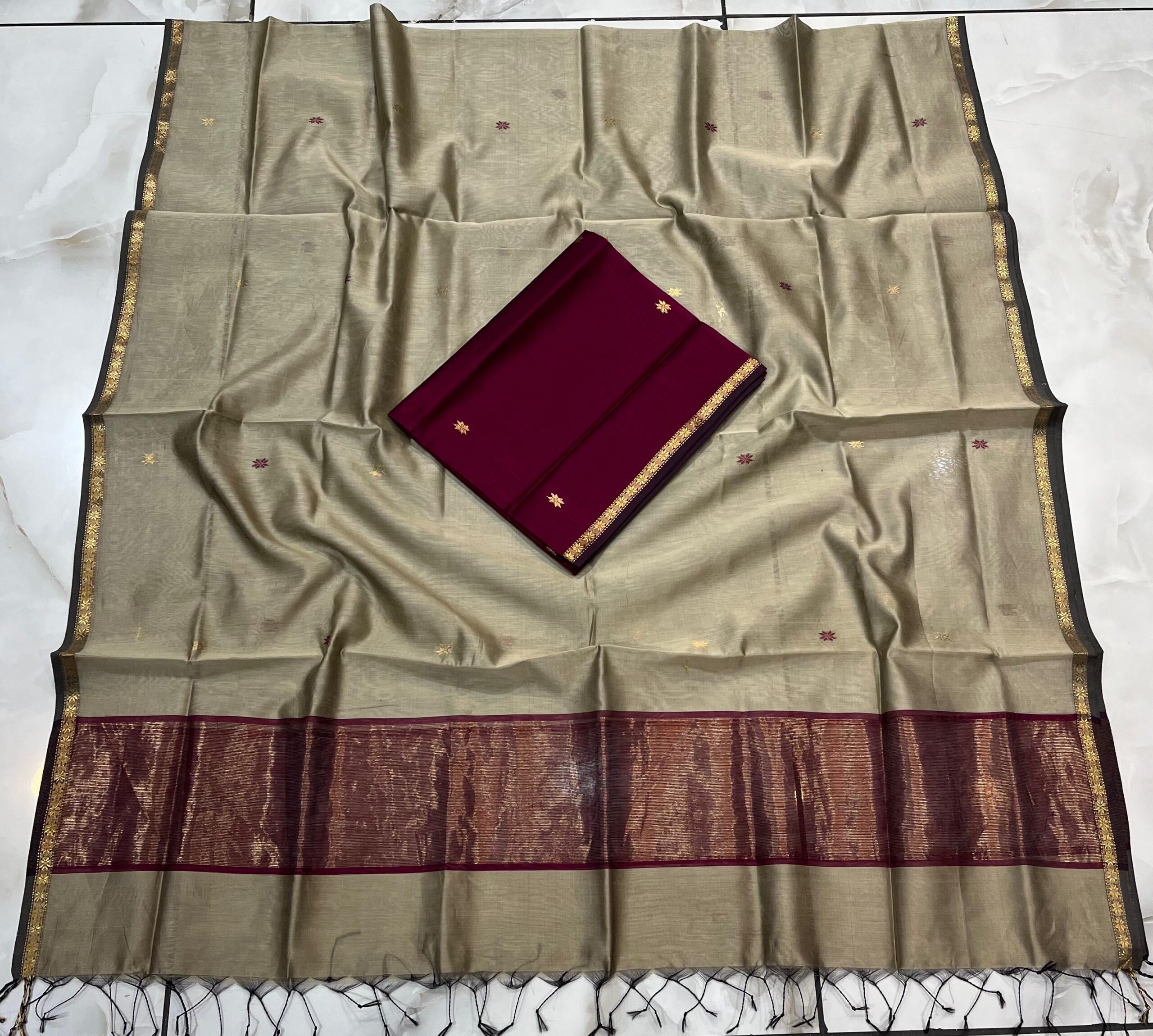 Maheshwari Star Buti Top & Dupatta Dress Material