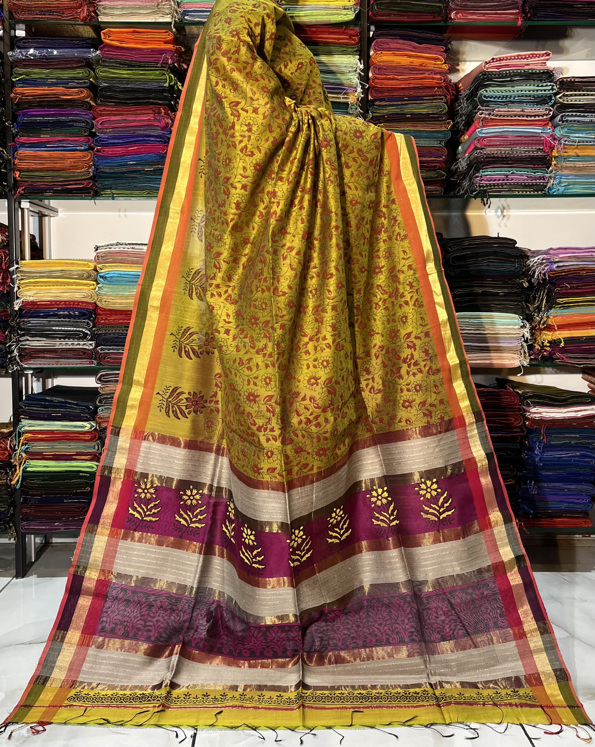 Maheshwari Teen Kila Print Saree