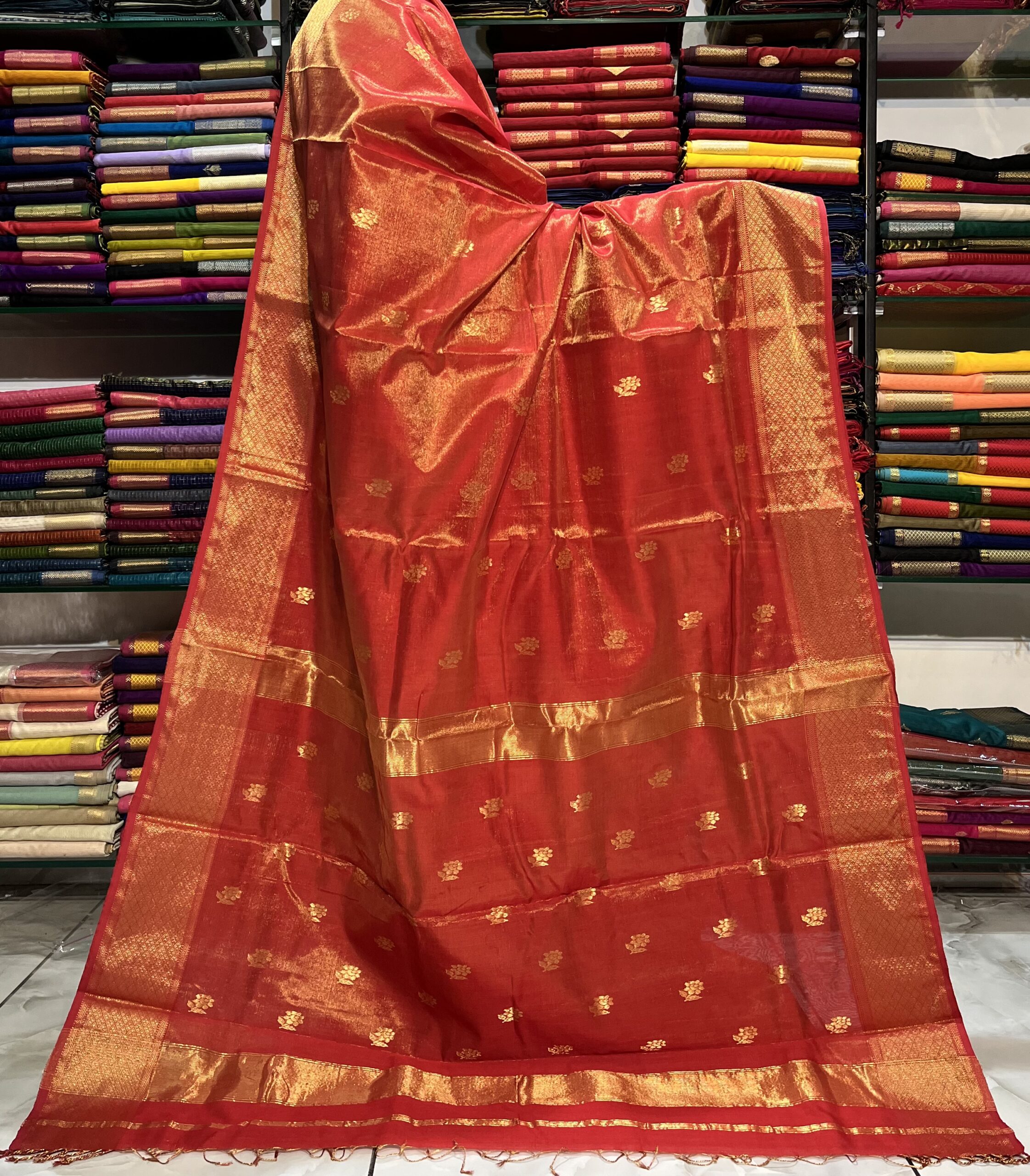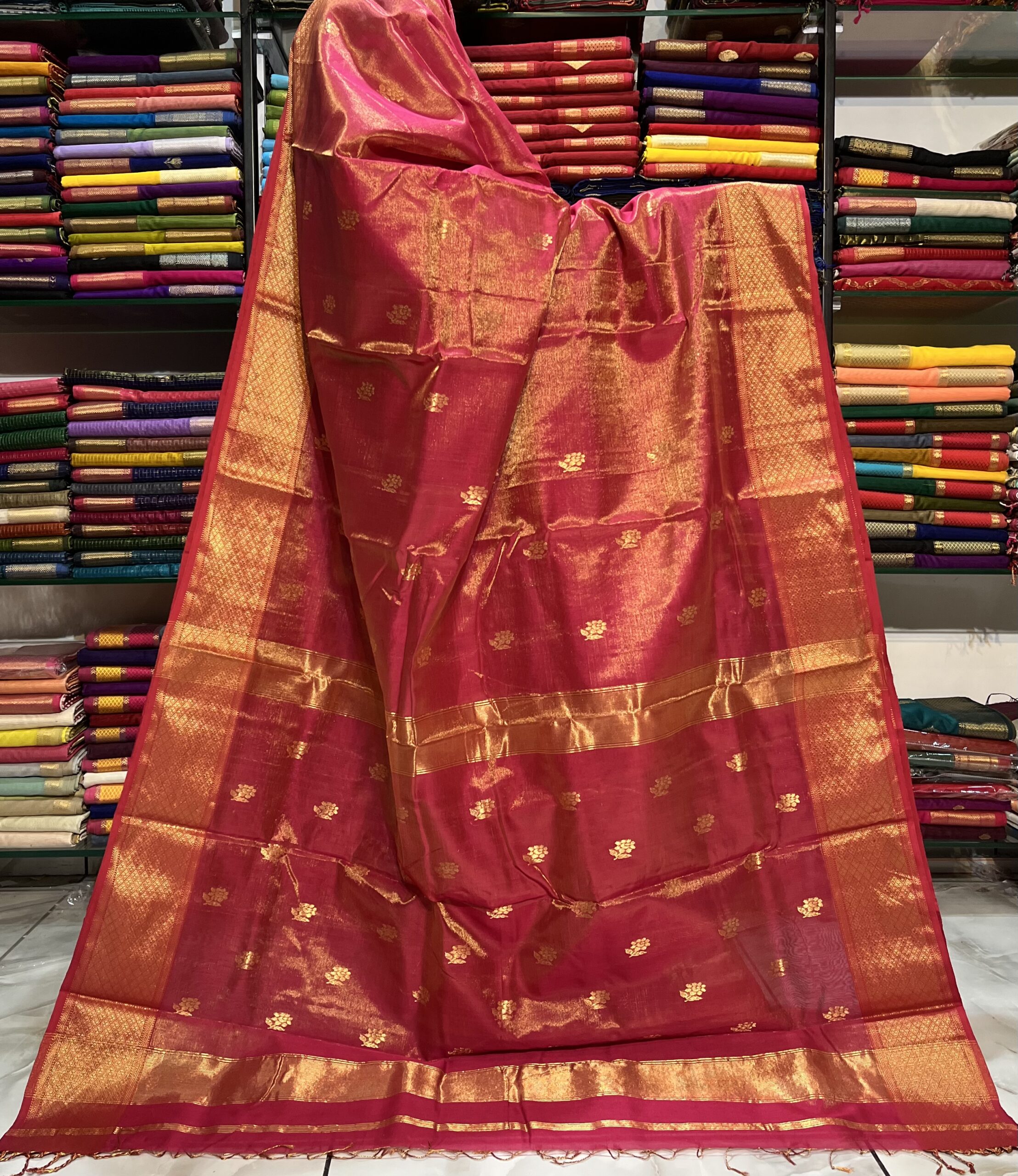 Maheshwari Tissue Rose Buti Saree