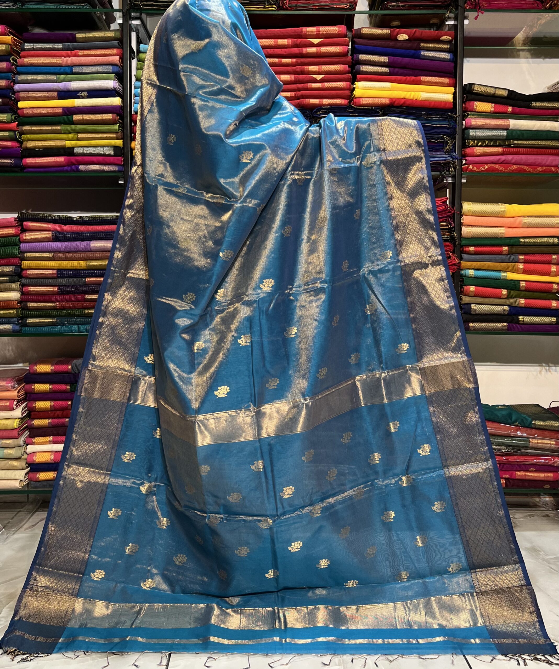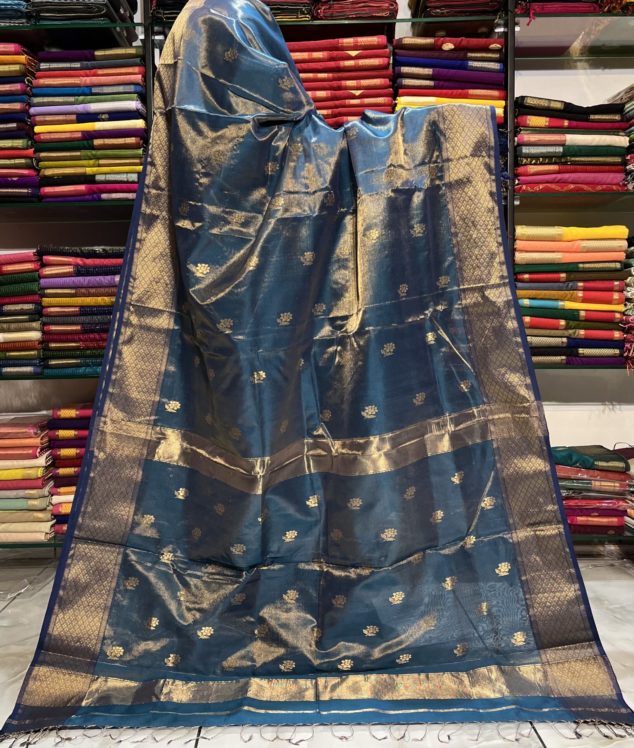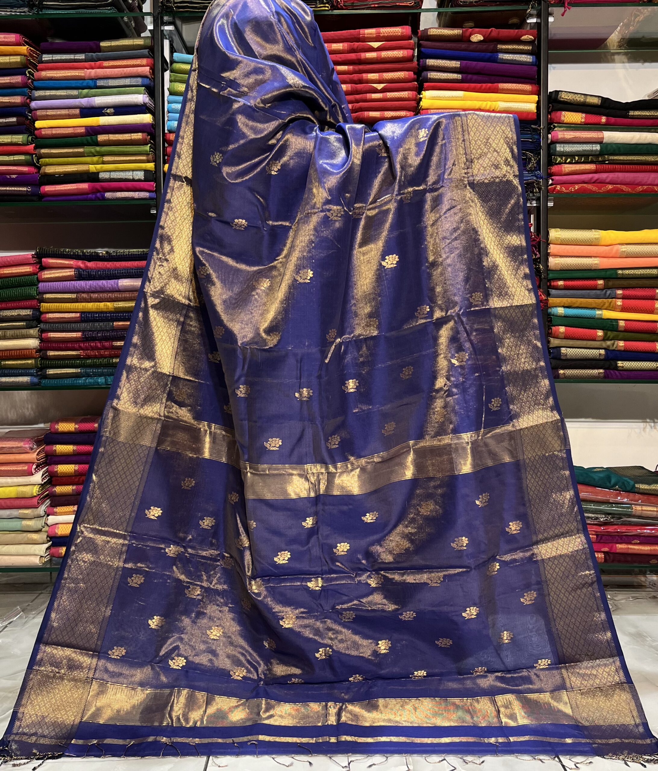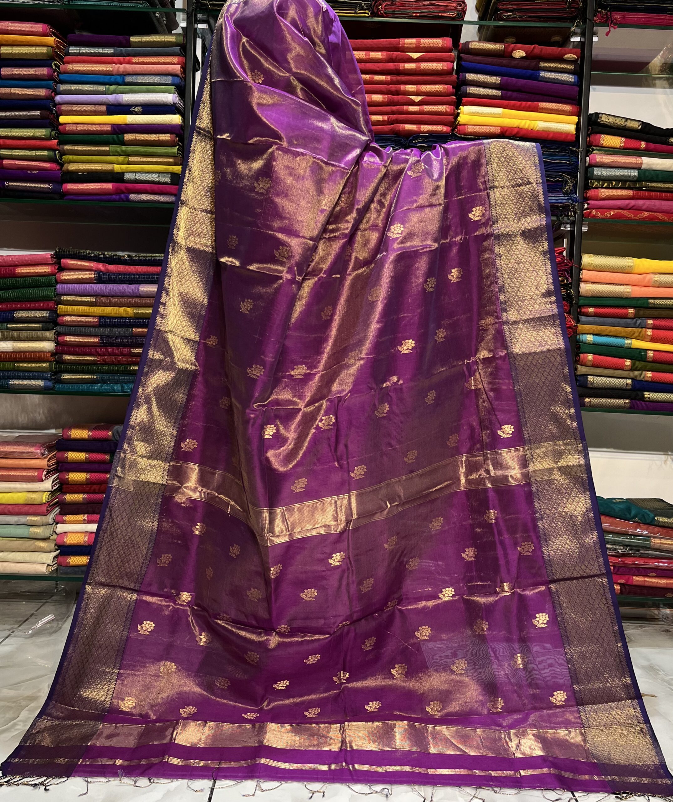 Be the first to review “Maheshwari Tissue Rose Buti Saree”