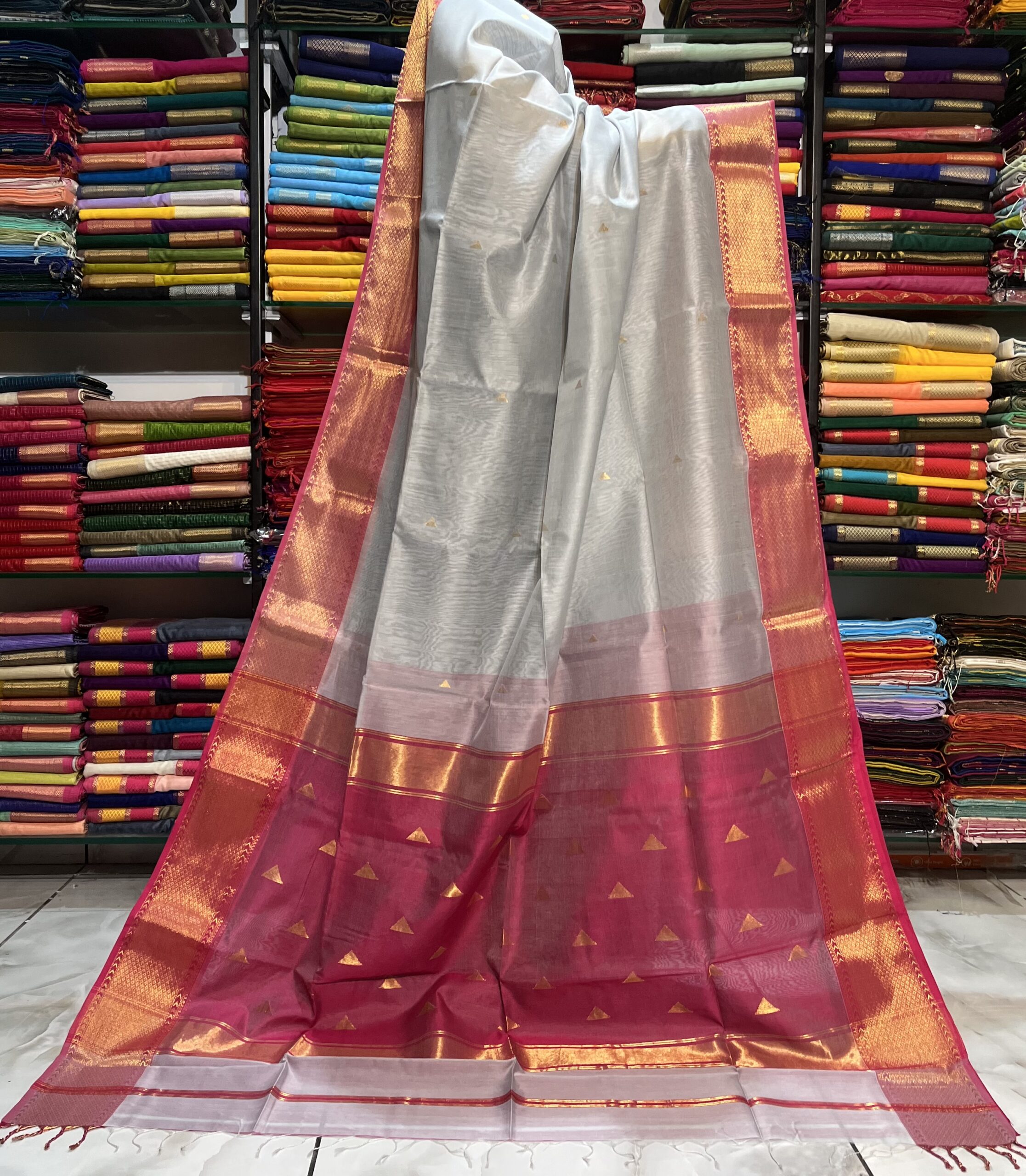 Be the first to review “Maheshwari Triangle Zari Buti Saree”